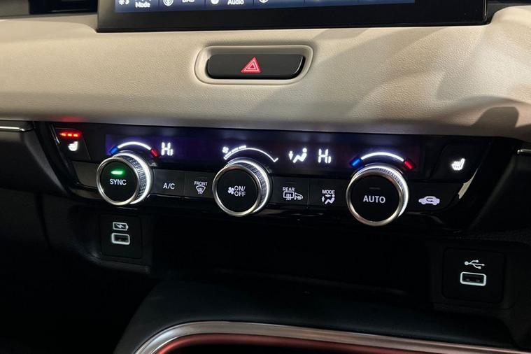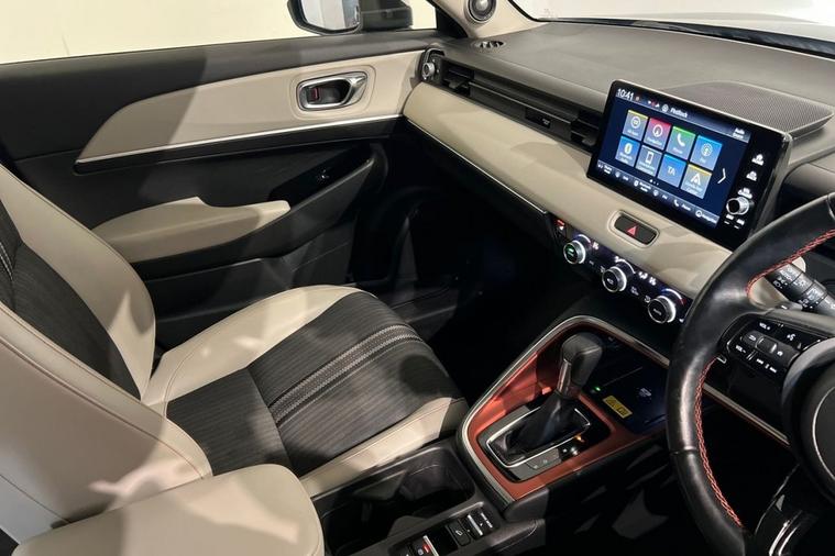 This 2022 Honda HR-V h i-MMD Advance Style is a Euro 6 compliant petrol hybrid, offering an impressive 52 miles per gallon. As a 1.5 litre hybrid, it combines efficient performance with advanced technology. This Advance Style trim level comes equipped with the Honda CONNECT system, featuring built in navigation and seamless integration with both Android Auto and Apple CarPlay. Further enhancing convenience, it includes wireless Apple CarPlay and wireless phone charging, ensuring your devices stay powered and connected. For added safety and awareness, the vehicle boasts automatic headlights and a Blind Spot Information system that includes Cross Traffic Monitor. The low CO2 emissions of this Honda HR-V highlight its environmentally conscious design, making it a more efficient choice compared to many other vehicles in its class. The combination of its hybrid powertrain and advanced features like the Blind Spot Information system with Cross Traffic Monitor demonstrates a commitment to both economy and driver assistance. This particular model offers a sophisticated driving experience, blending modern technology with practical efficiency for everyday journeys.