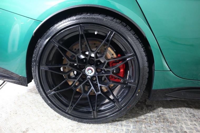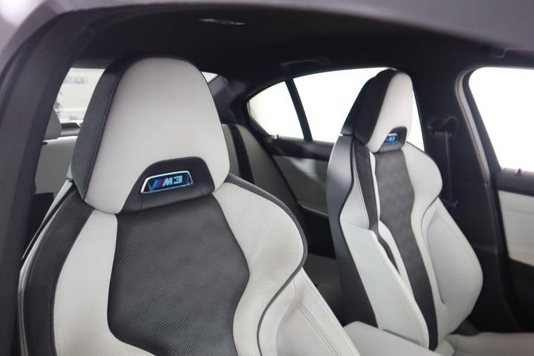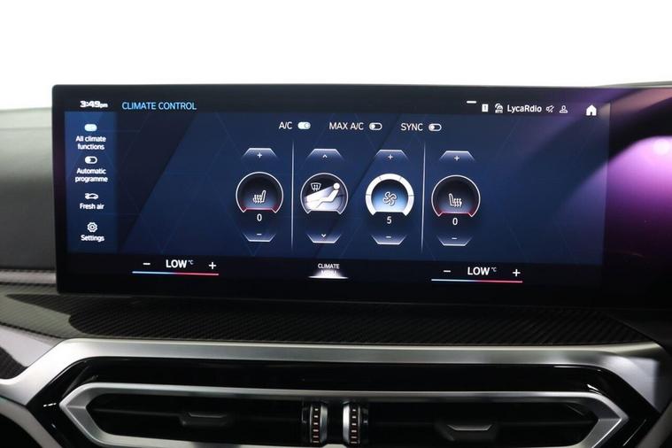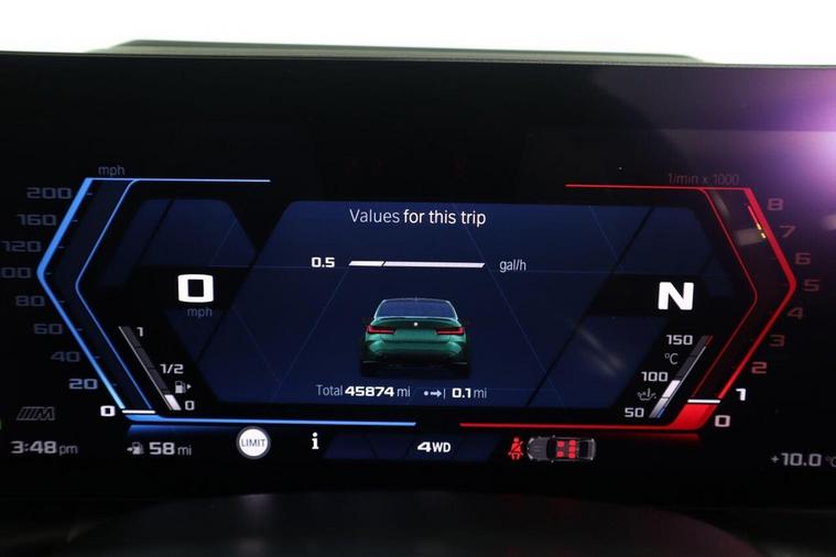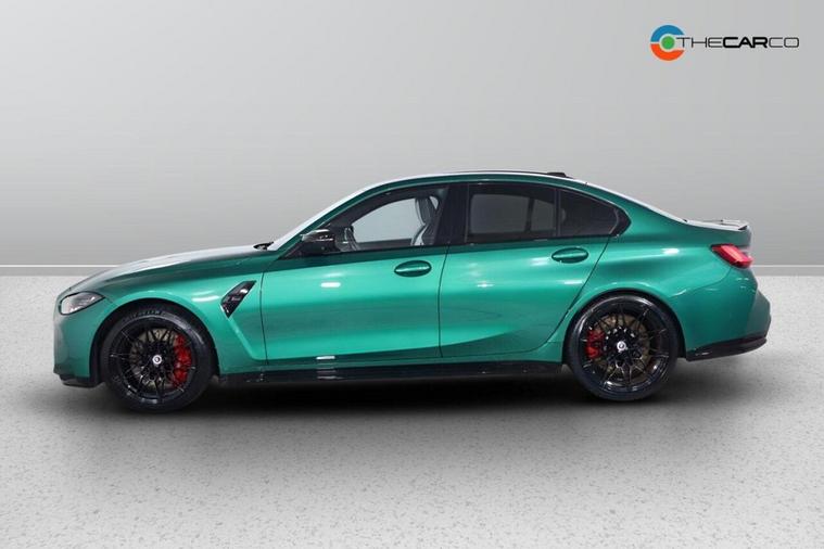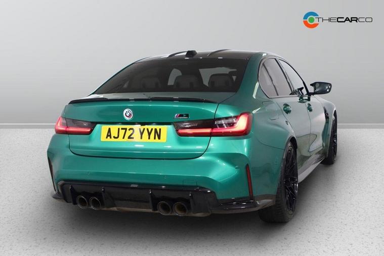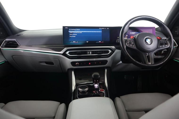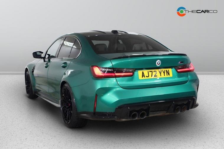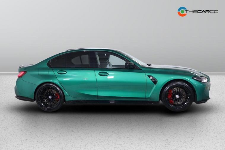 This 2023 BMW M3 BiTurbo Competition is a remarkable example, having had only one owner since new. This exceptional saloon boasts a powerful 3.0 litre petrol engine and a four wheel drive drivetrain, ensuring dynamic performance. It meets the Euro 6 emission class standards. Inside, you'll find a wealth of technology, including the Technology Plus Pack which features adaptive cruise control and a comprehensive 360 degree parking assistance system with front and rear cameras and sensors. Comfort is further enhanced by automatic three zone air conditioning and a heated steering wheel, perfect for colder days. The M3 Competition trim level signifies a focus on driving pleasure, and this particular model excels with an impressive 0-62mph acceleration time of just 3.5 seconds, demonstrating its superior performance capabilities compared to other vehicles in its class. Additionally, this M3 is in a low insurance group, offering potential savings for its next owner. Subtle yet distinctive BMW M 50 Year badges add a touch of heritage to this already desirable performance car.