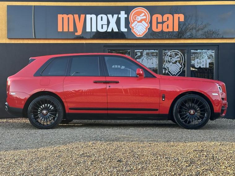 Key Points: 6.75-litre 563bhp Twin-Turbocharged V12, , Cullinan Package Rolls-Royce has been the leader in luxury in the automotive world for over 100 years. The Chichester-based brand has been regarded as the epitome of comfort and refined motoring ever since it started. For the first time, they have stepped into the SUV realm and proved they are the best in any class. With iconic Rolls-Royce features such as the Spirit of Ecstasy on the bonnet, the Starlight headlining unique to Rolls-Royce, and the superior build quality inside and out. They have taken their classic recipe for greatness and added it all to a car with proper off-roading capabilities and all the amenities to shine above all other vehicles in its class. This particular model features the Cullinan Pack, which essentially has every option you could ask for on your Cullinan, with everything from Rear Seat Entertainment to Shooting Star Headlining, to Night Vision. With these features, this Cullinan accommodates every traveller in unparalleled comfort. All this sublime comfort is underpinned by the work of art that is Rolls-Royces extremely special 6.5 Litre Twin-Turbo V12 which produces 563 Horsepower. While having so much power, it is still absolutely silent in the cabin with zero vibration. The harmony between comfort and performance is second to none in the SUV class. No other SUV has come close to the level of the Cullinan. With its closest competitor being the Bentley Bentayga or even the Mercedes-Benz GLS 63, they cannot match the prowess of Rolls-Royce when it comes to luxury. Cullinan Package Rear Theatre Configuration Rolls-Royce Bespoke Audio Driver Assistance Systems (Active Cruise Control, Night Vision with Pedestrian Recognition, Park Assistance) Carbon Fibre Spirit of Ecstasy Dark Exterior Package (Black Exterior Detailing, Black Exterior Stainless Steel Package) Single Coachline in Black Rear Privacy Glass RR Monogram Embossed on all Headrests Spirit of Ecstasy Embossed on Doors Extended Leather Headlining Extended Veneer Fascia Piano Black Veneer Universal Garage Door Opener Coloured Interior Brightwork Lambswool Floor Mats Loading Assistant Signature Key Apple CarPlay Head-Up Display Enhanced Clock Face Front Heated Massage Seats Illuminated Cullinan Treadplates Contrast Seat Piping Heated Passenger Surround Polished Stainless Steel Package Bespoke Interior - Module Editing Picnic Tables Shooting Star Headliner 24 Inch Alloy Wheels in Gloss Black