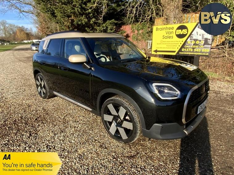 MINI COUNTRYMAN 1.5 C MHEV EXCLUSIVE SUV PETROL HYBRID LEVEL 2 FINISHED IN METALLIC MIDNIGHT BLACK 2 TONE MELTING SILVER ROOF & MIRROR CAPS, FULL CREAM LEATHER INTERIOR, FULLY LOADED FANTASTIC LOOKING COUNTRYMAN, SAT-NAV, AIRCON, HEATED SEATS, CRUISE CONTROL, KEYLESS GO, LEVEL-2 PACK PACKAGE COST AN ADDITIONAL (£5300) GIVES ADDITIONAL OPTIONS LIKE HARMON KARDON SURROUND AUDIO SYSTEM, ELECTRIC GLASS PANORAMIC SLIDING ROOF WITH ELECTRIC BLIND, REAR SUN PROTECTION PRIVACY GLASS, DRIVING ASSISTANT PLUS (ADAPTIVE CRUISE CONTROL) UPGRADE 20 INCH 2-TONE WINDMILL SPOKE ALLOY WHEELS JET BLACK-VIBRANT SILVER WAS AN OPTIONAL £1200) ROOF RAILS, ELECTRIC TAILGATE, MULTI FUNCTION LEATHER STEERING WHEEL CREAM STITCHING, BLUETOOTH, AUTO STOP START, LANE DEPARTURE WARNING, SPEED LIMIT WARNING, PLUS MANY MORE OPTIONS, IN TOTAL THIS CAR HAS AN ADDITIONAL (£7200) IN OPTIONS, 1 LOCAL OWNER FROM NEW WITH FULL SERVICE HISTORY & FULL DEALER FACILITIES, 2 SETS KEYS, AAND SERVICE PACK, PX CHANGE AND LOW RATE FINANCE AVAILABLE WITH NO DEPOSIT TO PAY.BEST PX CHANGE PRICES PAID WITH INSTANT DECISION, NATIONWIDE DELIVERY AVAILABLE PLEASE CALL NICK ON 01376624029