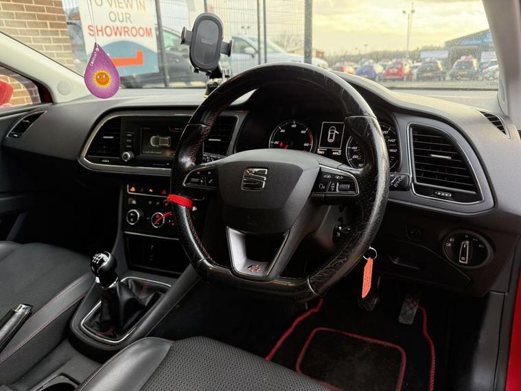 Scotts of Leeds used Car Sales are pleased to offer this SEAT LEON 2.0 TDI FR Hatchback 5 Door Diesel Manual in Red. The car is in good condition throughout, in a lovely colour combination and a great specification including Bluetooth, Front & rear parking sensors, Part Leather Seats, Voice command, Media point, AUX Point, USB Point, SD input, 6 speed gearbox, Alloy Wheels, ISOFIX, privacy glass, and much much more. The car will be supplied with an up to date service record and an MOT until December 2026 ready to drive away. The car has also had a NEW CLUTCH fitted in December 2024. £35 Road Tax and great MPG. 3 MONTH NATIONWIDE WARRANTY provided with all vehicles. NATIONWIDE DELIVERY also available. A guaranteed 12 Months MOT can be added for an extra £100. DISCLAIMER: The above specification is true and correct. Any other specification listed elsewhere can sometimes be incorrect. Please check with Sales Executive to clarify this if needed prior to purchase.