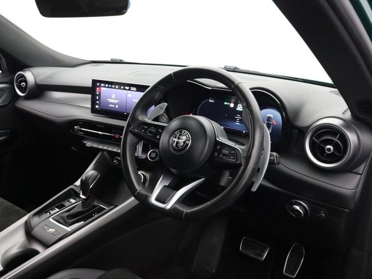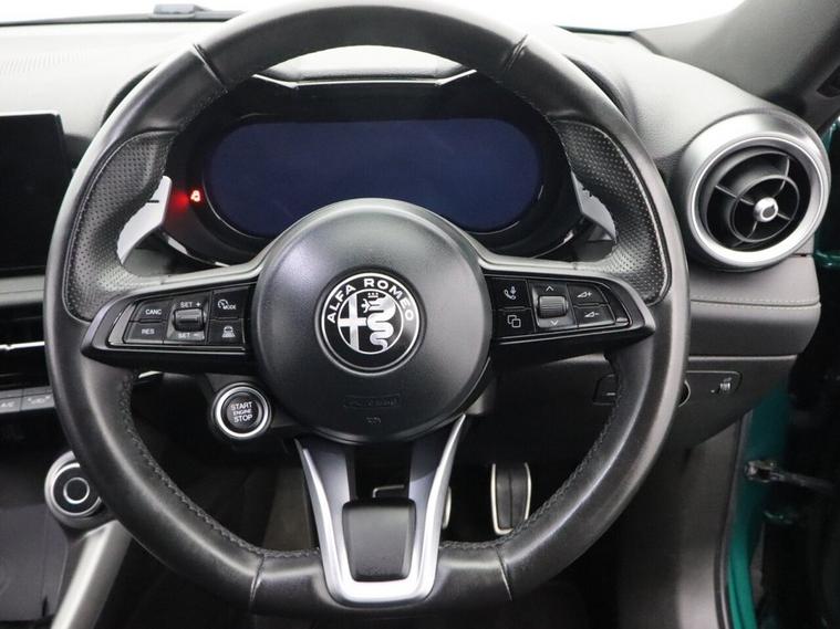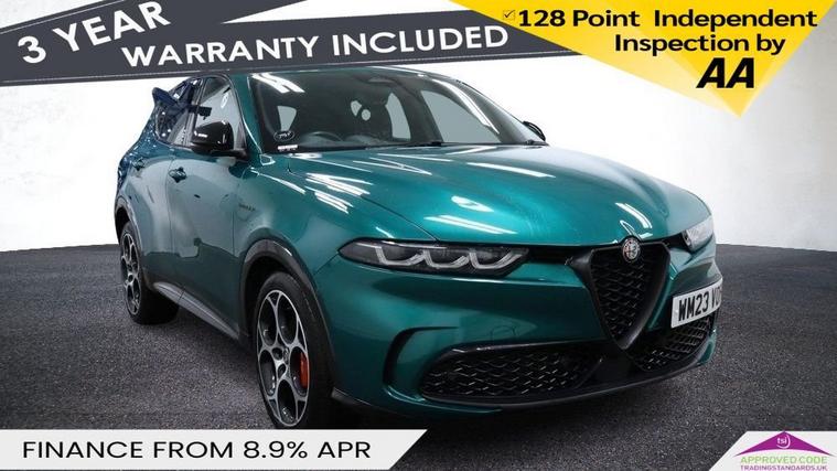 This 2023 Alfa Romeo Tonale VGT Veloce is presented in excellent condition, having had only one owner from new and boasting a full dealership service history with a clear vehicle history check. This stylish SUV features a 1.5 litre petrol hybrid engine, meeting Euro 6 emissions standards, and comes in the desirable Veloce trim. Inside, youll find a 10.25 inch radio touchscreen with Bluetooth connectivity, along with seamless integration for Apple CarPlay and Android Auto. Driving is made easier with intelligent adaptive cruise control and automatic headlamps that activate at dusk, complemented by front and rear parking sensors for effortless manoeuvring. The Alfa Romeo Tonale VGT Veloce offers a compelling blend of performance and practicality. Its acceleration from 0 to 62mph in just 8.8 seconds demonstrates its responsive nature, setting it apart from many other vehicles in its class. The generous boot space ensures you have ample room for luggage or shopping, making it a versatile choice for everyday life. This combination of advanced technology, efficient hybrid power, and the renowned Alfa Romeo driving experience makes this Tonale a standout option.