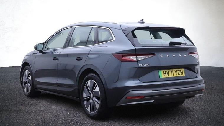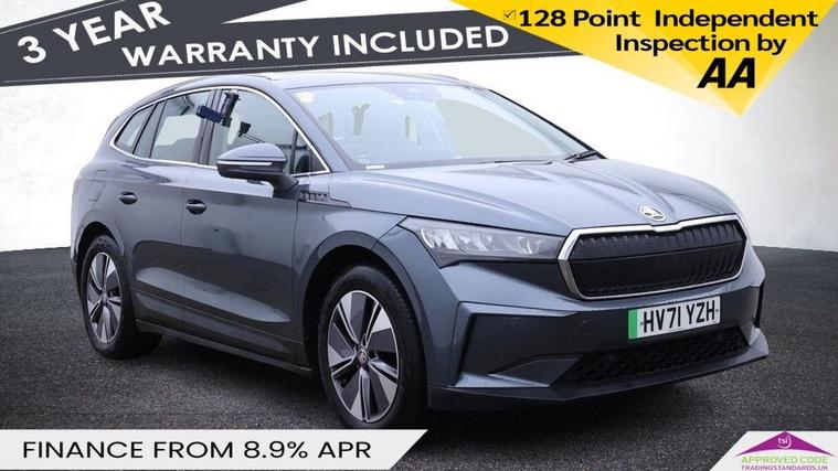 This 2021 Skoda Enyaq electric vehicle boasts a clear vehicle history check and has had only one owner. It features a substantial 82 kWh battery, offering a maximum range of 331 miles when new. For convenience, it includes rear parking sensors, basic LED headlights with daytime running lights, and Bluetooth connectivity. The Enyaq also comes equipped with Wireless Smartlink, compatible with Android Auto, and Skoda Connect iV Remote Services, allowing for features like remote air conditioning control. The Enyaq 80 provides an impressive electric driving experience, with a full charge at home taking approximately 13 hours using a 7kW charger. Public charging is also efficient, reaching 80% capacity from empty in just 1 hour and 14 minutes. This model stands out with its generous boot space, offering ample room for luggage or shopping. With a long MOT, this Enyaq presents a well maintained and practical electric car option.