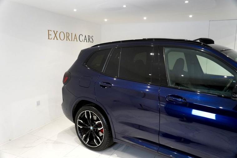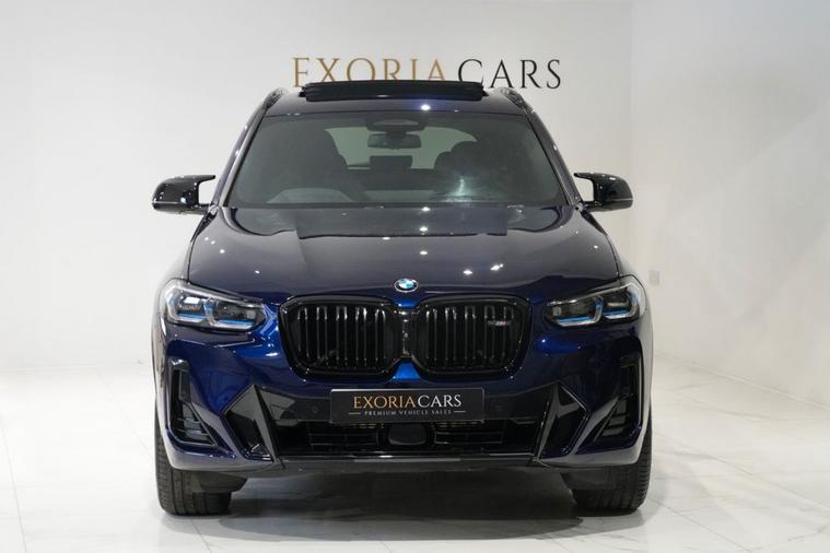 Exoria Cars are pleased to offer this BMW X3 3.0 M40i MHT SUV 5dr Petrol Hybrid Auto xDrive Euro 6 (s/s) (360 ps) registered on the 10/12/2021. This particular model is presented in Tanzanite Blue featuring 21in Alloy Wheels - 718 M Double-Spoke Bi-Colour. This vehicle has many optional spec extras. These include (but are not limited to) Panoramic Glass Sunroof, Harman Kardon Surround Audio Sound System, Technology Plus Pack, Fully Electric & Memory Seats, Driving Assistant Professional (Adaptive Cruise), Heads Up Display, Gesture Control, Parking Assistant Plus, 360* 3D Camera, Laser Lights, Blind Spot Assist, Interior Trim - Carbon Fibre, Heated Steering Wheel, Additional Storage Compartment, Ambient Lighting, Electric Folding Mirrors, Wireless Apple Car Play/Android Auto, active safety features and much more. FULL BMW Service History. For full details please do enquire via email or phone. This vehicle comes with 2 keys, a full (clear) HPI check and a 6 month warranty when purchasing this vehicle. AA CARS APPROVED DEALER. All of our vehicles are thoroughly inspected before sale ensuring peace of mind to all customers of Exoria Cars. All 5* reviews on all platforms giving you peace of mind with your new purchase! AA Checks/RAC Checks are welcome! Any used car purchase also qualifies for a free interior and exterior deep clean detail worth £400 with our partnered company DD Detailing who are one of the largest detailing companies in the UK. This vehicle is ready to drive away today! PCP and HP finance available from 9.9% APR (subject to status)