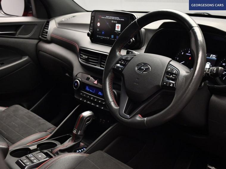 The Hyundai Tucson 1.6 CRDi MHEV N Line combines efficient diesel mild-hybrid performance with a smooth DCT automatic transmission, delivering a refined and responsive SUV driving experience. With four services recorded, this Tucson has been well maintained and is presented in excellent condition, enhanced by the sporty N Line styling. It features a reverse camera and parking sensors for easy manoeuvring, along with Apple CarPlay, Bluetooth, DAB radio and integrated satellite navigation for seamless connectivity. Dual-zone climate control ensures comfort for all occupants, while heated seats and a heated steering wheel provide added warmth in colder conditions. Driver assistance systems include lane assist, hill assist and selectable drive modes, offering added safety and adaptability on every journey. This Tucson N Line blends modern technology, comfort and efficiency in a stylish and practical family SUV.
