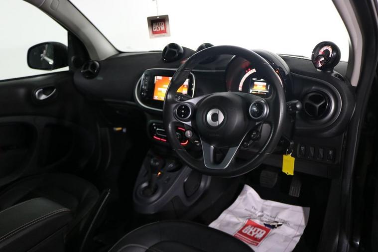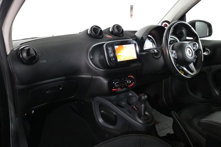 This well maintained Smart Fortwo PRIME PREMIUM edition finished in Black looks fantastic complemented by 15 inch black alloy wheels and LED Daytime Running Lights. Enjoy economical motoring with JUST £20 ROAD TAX, up to 78 MPG and CHEAP INSURANCE. Find your way with integrated SATELLITE NAVIGATION with LCD Touch-Screen controls. Keep connected with BLUETOOTH phone system with USB port and Voice-Control. Sit in luxury with FULL BLACK LEATHER upholstery, HEATED FRONT SEATS and PANORAMIC GLASS ROOF. Comfortable to drive with CRUISE CONTROL and AUTOMATIC CLIMATE CONTROL with AIR CON. Park in ease with REAR PARKING SENSORS. Also equipped with ISOFIX Seats, electric windows, immobiliser and remote door locking with 2 x keys. Buy in confidence with SERVICE HISTORY with 7 x Documented Services.
