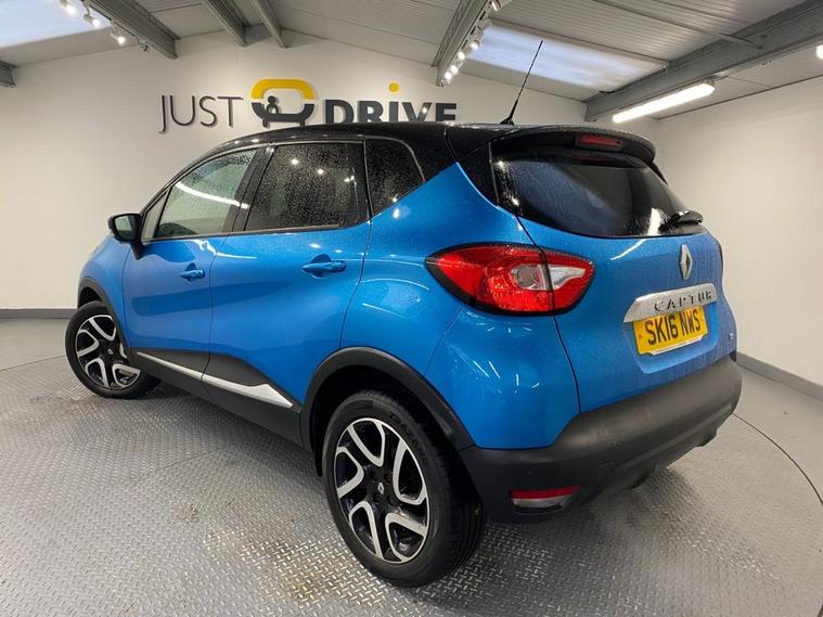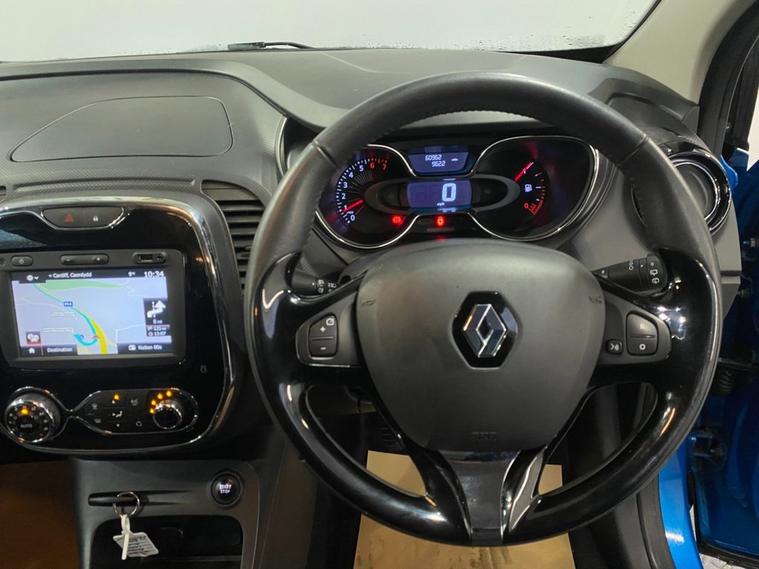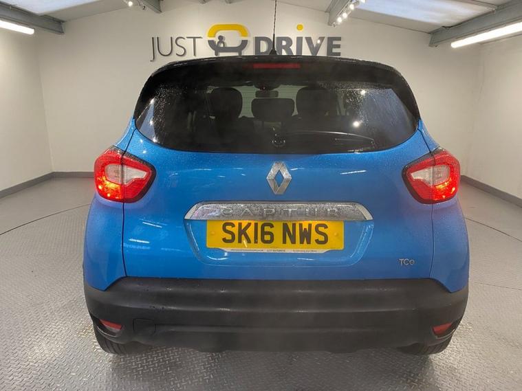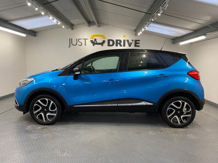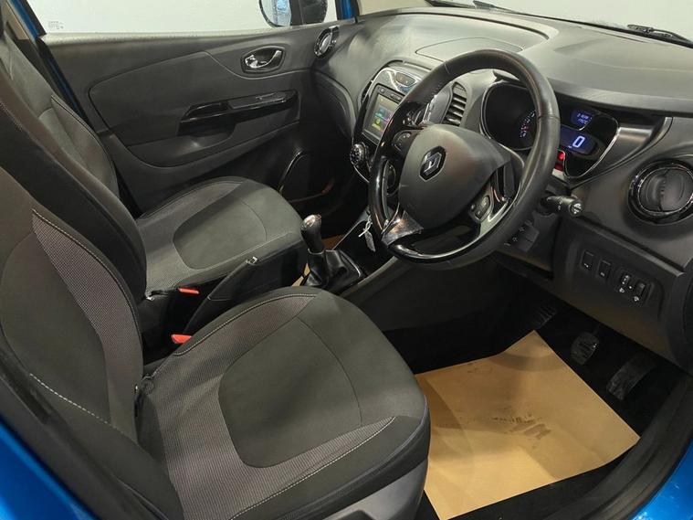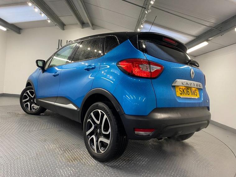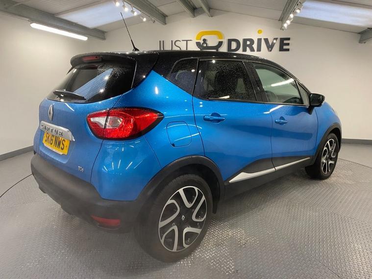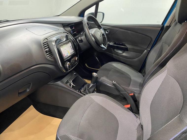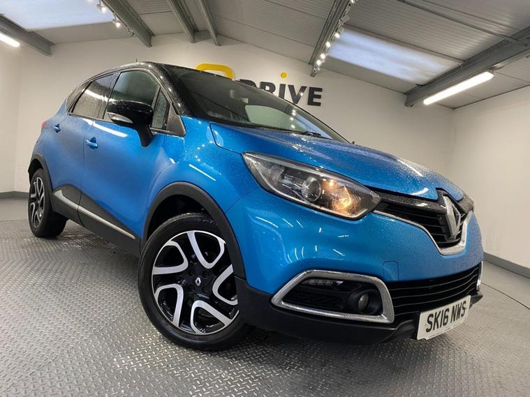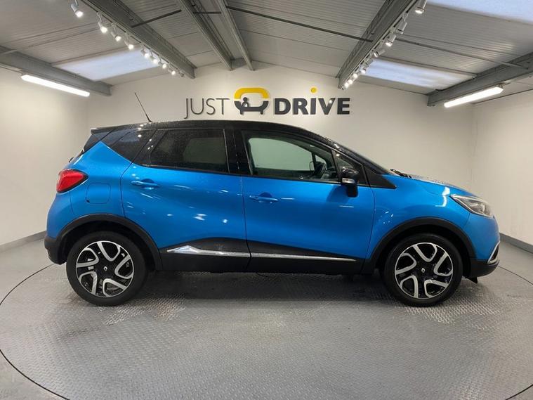 Stylish, spacious and cost-effective to run, the Renault Captur compact crossover is an attractive and hassle-free used car choice. Its got a sharp design, great level of equipment and is a highly comfortable drive for up to five adults. Finished in Pacific Blue metallic with a contrasting black roof and mirror caps, the sporty exterior is enhanced with 17 diamond cut alloy wheels together with a rear spoiler and privacy glass - it looks fantastic ! Moving inside the bright and roomy cabin theres clean and comfortable seating for five with ISOFIX anchor points on the front passenger and rear seats. The R-Link colour touchscreen media system is easy to use and features navigation, Bluetooth connectivity and fingertip audio controls. Theres also air conditioning, cruise control together with an ECO drive mode - its a really well equipped model. The Capturs covered just under 61, 000 miles from new - very low for a 2016 model and is in excellent condition both inside and out.