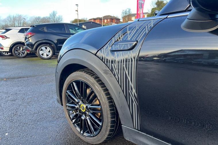 This 2022 MINI Electric Hatch Cooper SE Shadow Edition boasts a clear vehicle history, offering peace of mind for its next owner. As an all electric model, it features a 33 kWh battery with a maximum range of 141 miles when new. Charging is convenient, with a full charge at home on a 7kW charger taking approximately 5 hours and 15 minutes, while rapid public charging can achieve 80% capacity in just 36 minutes from empty. This Shadow Edition trim level includes desirable features such as Active Cruise Control, a Panoramic Glass Sunroof, Apple CarPlay integration, LED headlights with distinctive ring daytime running lights, and a premium Harman Kardon sound system. Experience the spirited performance of this MINI Electric Hatch, with its impressive 0 to 60 mph acceleration achieved in a swift 7.3 seconds. These highlights demonstrate how this particular vehicle offers a superior driving experience compared to others in its class. The combination of its electric powertrain, advanced technology, and luxurious appointments makes this Cooper SE Shadow Edition a compelling choice for those seeking an engaging and refined drive.