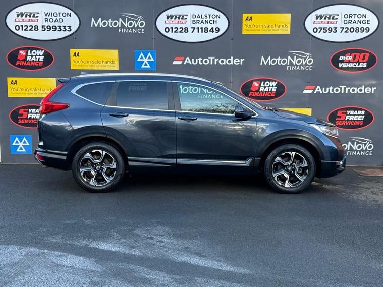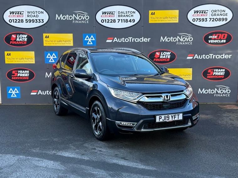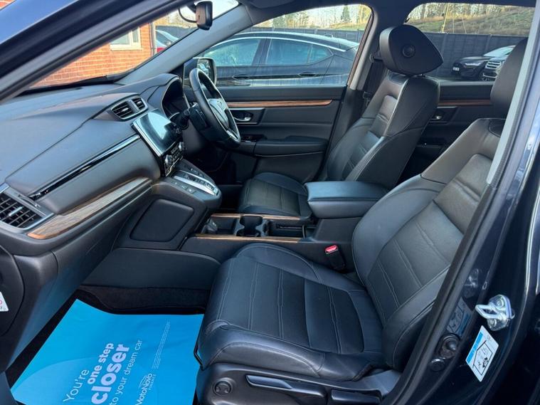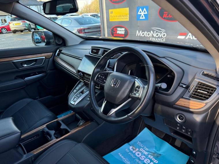 This 2019 Honda CR-V h i-MMD SR presents an exceptional opportunity with remarkably low mileage for its age, having covered just 39, 300 miles. This Four Wheel Drive model is powered by an efficient 2.0L Petrol Hybrid engine, meeting Euro 6 emissions standards. The SR trim level ensures a well equipped experience, featuring integrated Bluetooth Hands Free Telephone for seamless connectivity, and the advanced Honda CONNECT system with GARMIN Navigation, compatible with both Android Auto and Apple CarPlay. Driving is further enhanced by LED headlights that automatically adjust to ambient light conditions thanks to the dusk sensor, and Intelligent Adaptive Cruise Control for relaxed journeys. The performance of this CR-V is noteworthy, achieving 0-60mph in just 9.0 seconds, demonstrating a responsive and capable drive. This acceleration figure indicates a superior performance compared to many other vehicles in its class. The combination of its hybrid technology, Four Wheel Drive capability, and comprehensive feature set makes this 2019 Honda CR-V h i-MMD SR a compelling choice for those seeking a practical, efficient, and well appointed SUV.