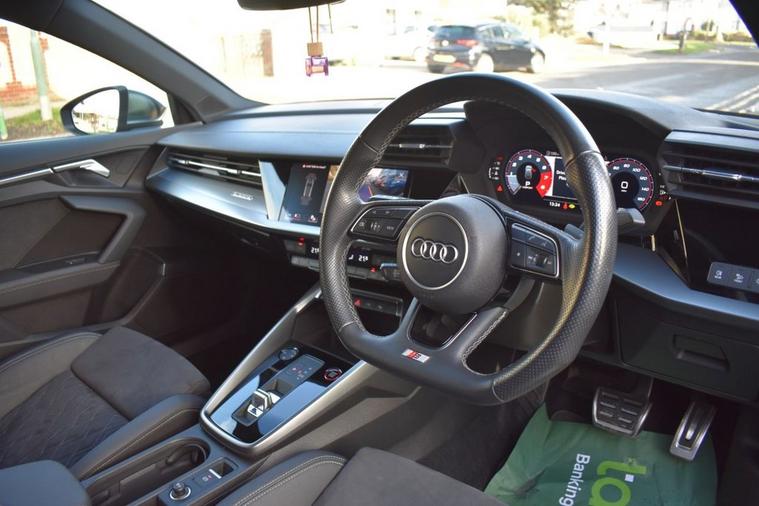 This 2022 Audi S3 TFSI offers an exhilarating driving experience with its powerful 2.0 litre petrol engine and four wheel drive system, ensuring superb traction and performance. As a Euro 6 compliant vehicle, it meets stringent emission standards. This S3 comes equipped with the desirable Comfort and Sound Package, which includes a luxury branded sound system, front and rear parking sensors, a rear camera, and heated front seats for enhanced comfort. The inclusion of LED headlights with dynamic rear indicators, coupled with high beam assist and automatic on headlights activated by a light and rain sensor, provide excellent visibility in all conditions. The Audi S3 TFSI stands out with its impressive acceleration, achieving 0-60mph in just 4.8 seconds, demonstrating its sporty capabilities. This performance, combined with its sophisticated technology and comfort features, positions it as a superior choice within its class. Furthermore, the generous boot space offers practicality for everyday use and longer journeys, making this Audi S3 a well rounded and compelling option.