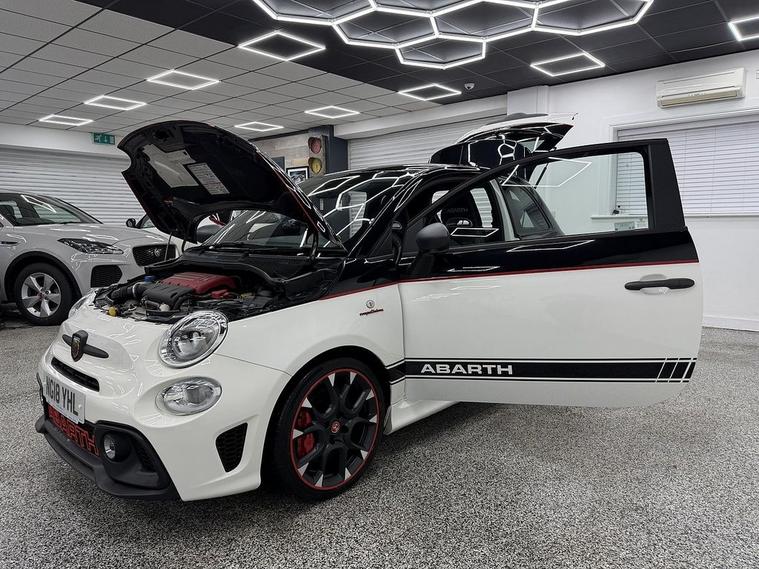 Crystal motor company are delighted to offer for sale this beautifully presented 2018 Abarth 595 1.4 T-Jet Competizione Hatchback 3dr Petrol Manual Euro 6 (180 bhp) finished in WHITE. This car comes with TWO KEYS, THREE FORMER KEEPERS, FULL SERVICE HISTORY. This car is equipped with 17 ALLOY WHEELS, REAR PARKING SENSORS, REAR PRIVACY GLASS, BLACK LEATHER SEATS, MULTIFUNCTIONAL STEERING WHEEL, VIRTUAL COCKPIT, AIR CONDITIONING, SPORT MODE, DAB RADIO, BLUETOOTH AUDIO, BLUETOOTH PHONE CONNECTION, ETON SOUND SYSTEM UPGRADE. The car is 100% HPi clear. Part exchange and finance are available and all major credit and debit cards accepted. Crystal Motor Company Ltd Used Programme includes a full PDI inside and out, MOT, mileage certificate and a full inside and out valet. You can request a personalised video with attention given to any specifics you would like a better view of and we will be pleased to assist you. Likewise, we offer our customers a free collection service. Our journey began in 1996 with the aim to deliver the best possible customer experience, you will enjoy a completely hassle free approach, no pressure and great prices, values we stand by to this day. Looking to finance your next car? We have over 30 lenders on board to help each customer with their financial circumstance. Every vehicle benefits from a minimum of 3 months warranty with the option to extend to 6/12/24/36 months.
