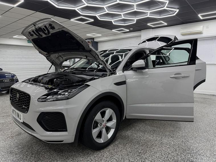 Crystal motor company are delighted to offer for sale this beautifully presented 2021 Jaguar E-PACE 2.0 D204 MHEV R-Dynamic S SUV 5dr Diesel Auto AWD Euro 6 (s/s) (204 ps) finished in BORASCO GREY. This car comes with TWO KEYS, ONE OWNER FROM NEW, SERVICE HISTORY. This car is equipped with 18 ALLOY WHEELS, FRONT AND REAR PARKING SENSORS, REAR REVERSING CAMERA, ELECTRIC FOLDING WING MIRRORS, ELECTRIC FRONT AND REAR WINDOWS, EXTERIOR BLACK PACK, HEATED WINDSCREEN, BLACK LEATHER SEATS, ELECTRIC FRONT SEATS, MEMORY DRIVERS SEAT, HEATED FRONT SEATS, PADDLE SHIFT, CRUISE CONTROL, DAB RADIO, BLUETOOTH AUDIO, BLUETOOTH PHONE CONNECTION, SATNAV, APPLE CARPLAY, ANDROID AUTO. The car is 100% HPi clear. Part exchange and finance are available and all major credit and debit cards accepted. Crystal Motor Company Ltd Used Programme includes a full PDI inside and out, MOT, mileage certificate and a full inside and out valet. You can request a personalised video with attention given to any specifics you would like a better view of and we will be pleased to assist you. Likewise, we offer our customers a free collection service. Our journey began in 1996 with the aim to deliver the best possible customer experience, you will enjoy a completely hassle free approach, no pressure and great prices, values we stand by to this day. Looking to finance your next car? We have over 30 lenders on board to help each customer with their financial circumstance. Every vehicle benefits from a minimum of 3 months warranty with the option to extend to 6/12/24/36 months.