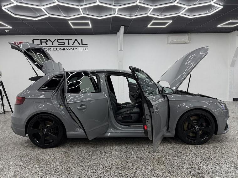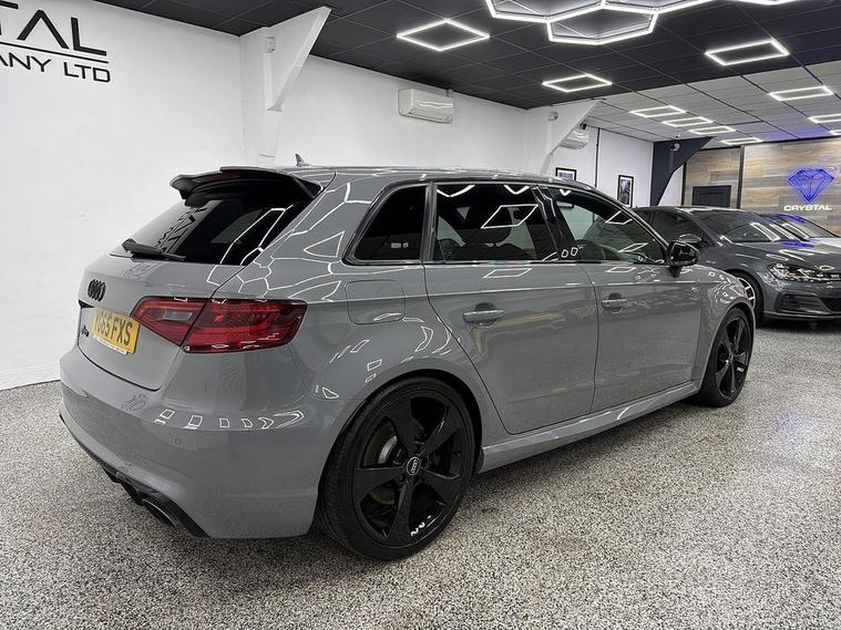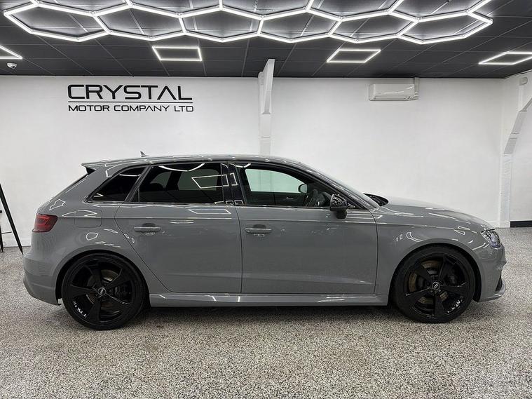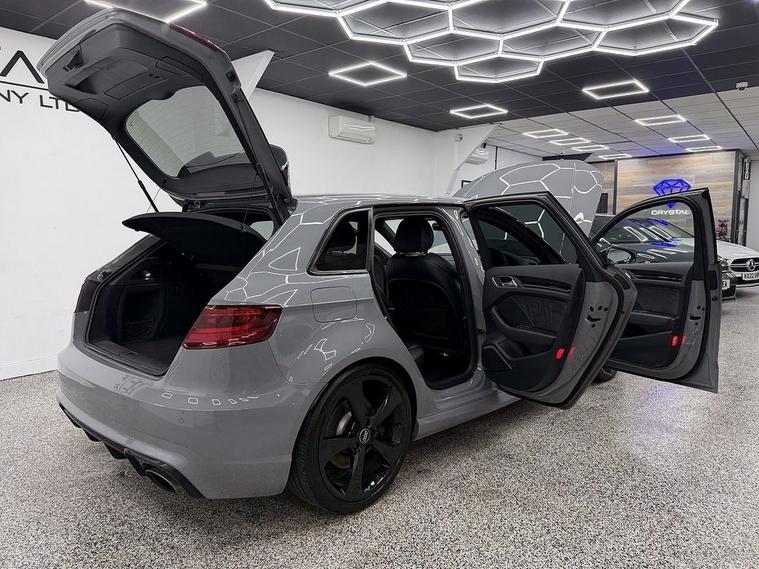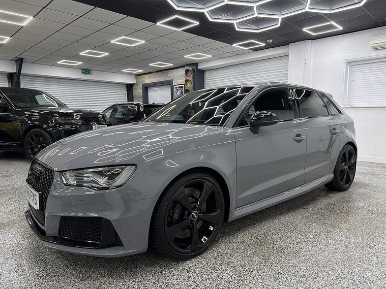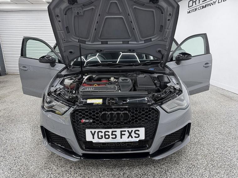 Crystal motor company are delighted to offer for sale this beautifully presented 2015 AUDI RS3 2.5 TFSI Sportback 5dr Petrol S Tronic quattro Euro 6 (s/s) (367 ps) finished in NARDO GREY. This car comes with TWO KEYS, FIVE FORMER KEEPERS, SERVICE HISTORY, LAST SERVICED ON 04/07/2025 AT 89, 398 MILES, GEARBOX SERVICED ON 04/05/2021 AT 51, 889 MILES. This car is equipped with 19 ALLOY WHEELS, GLOSS BLACK BRAKE CALLIPERS, FRONT AND REAR PARKING SENSORS, GLOSS BLACK EXTERIOR PACK, BLACK LEATHER SEATS, HEATED FRONT SEATS, PADDLE SHIFT, CRUISE CONTROL, AUDI DRIVE SELECT, BACKGROUND LIGHTING, BANG AND OLUFSEN SOUND SYSTEM, FM/AM RADIO, BLUETOOTH AUDIO, BLUETOOTH PHONE CONNECTION, SATNAV. The car is 100% HPi clear. Part exchange and finance are available and all major credit and debit cards accepted. Crystal Motor Company Ltd Used Programme includes a full PDI inside and out, MOT, mileage certificate and a full inside and out valet. You can request a personalised video with attention given to any specifics you would like a better view of and we will be pleased to assist you. Likewise, we offer our customers a free collection service. Our journey began in 1996 with the aim to deliver the best possible customer experience, you will enjoy a completely hassle free approach, no pressure and great prices, values we stand by to this day. Looking to finance your next car? We have over 30 lenders on board to help each customer with their financial circumstance. Every vehicle benefits from a minimum of 3 months warranty with the option to extend to 6/12/24/36 months.