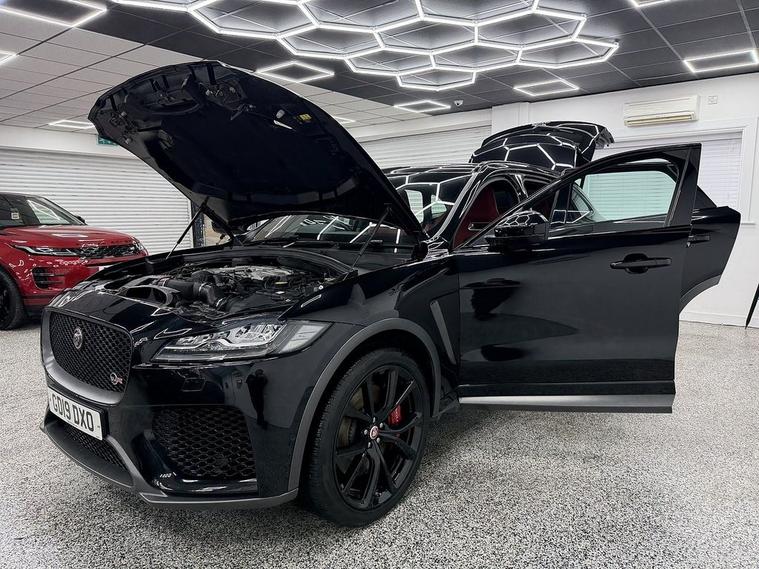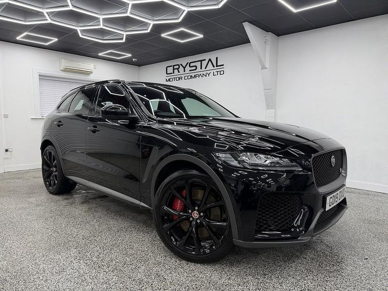 Crystal motor company are delighted to offer for sale this beautifully presented 2019 Jaguar F-PACE 5.0 V8 SVR SUV 5dr Petrol Quickshift AWD Euro 6 (s/s) (550 ps) finished in BLACK. This car comes with TWO KEYS, ONE FORMER KEEPER, SERVICE HISTORY. This car is equipped with 20 ALLOY WHEELS, RED BRAKE CALLIPERS, FRONT AND REAR PARKING SENSORS, REAR REVERSING CAMERA, ELECTRIC REAR TAILGATE, ELECTRIC FOLDING WING MIRRORS, LED HEADLIGHTS, TWO TONE BLACK AND RED LEATHER SEATS, ELECTRIC MEMORY FRONT SEATS, HEATED AND COOLED FRONT SEATS, HEATED REAR SEATS, PADDLE SHIFT, CRUISE CONTROL, HEATED STEERING WHEEL, EXHAUST VALVE CONTROL, MERIDIAN SOUND SYSTEM, ALCANTARA HEADLINING, DAB RADIO, BLUETOOTH AUDIO, BLUETOOTH PHONE CONNECTION, SATNAV, APPLE CARPLAY, ANDROID AUTO. The car is 100% HPi clear. Part exchange and finance are available and all major credit and debit cards accepted. Crystal Motor Company Ltd Used Programme includes a full PDI inside and out, MOT, mileage certificate and a full inside and out valet. You can request a personalised video with attention given to any specifics you would like a better view of and we will be pleased to assist you. Likewise, we offer our customers a free collection service. Our journey began in 1996 with the aim to deliver the best possible customer experience, you will enjoy a completely hassle free approach, no pressure and great prices, values we stand by to this day. Looking to finance your next car? We have over 30 lenders on board to help each customer with their financial circumstance. Every vehicle benefits from a minimum of 3 months warranty with the option to extend to 6/12/24/36 months.