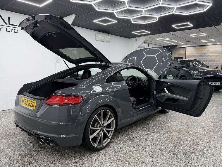 Crystal motor company are delighted to offer for sale this beautifully presented 2018 Audi TTS 2.0 TFSI Black Edition Coupe 3dr Petrol S Tronic quattro Euro 6 (s/s) (310 ps) finished in GREY. This car comes with TWO KEYS, TWO FORMER KEEPERS, VOLKSWAGEN SERVICE HISTORY. This car is equipped with 20 ALLOY WHEELS, BLACK BRAKE CALLIPERS, REAR PARKING SENSORS, REAR PRIVACY GLASS, ELECTRIC REAR SPOILER, GREY LEATHER SEATS, HEATED FRONT SEATS, PADDLE SHIFT, CRUISE CONTROL, VIRTUAL COCKPIT, DIGITAL CLIMATE CONTROLS, BANG AND OLUFSEN SOUND SYSTEM, DAB RADIO, BLUETOOTH AUDIO, BLUETOOTH PHONE CONNECTION, SATNAV. The car is 100% HPi clear. Part exchange and finance are available and all major credit and debit cards accepted. Crystal Motor Company Ltd Used Programme includes a full PDI inside and out, MOT, mileage certificate and a full inside and out valet. You can request a personalised video with attention given to any specifics you would like a better view of and we will be pleased to assist you. Likewise, we offer our customers a free collection service. Our journey began in 1996 with the aim to deliver the best possible customer experience, you will enjoy a completely hassle free approach, no pressure and great prices, values we stand by to this day. Looking to finance your next car? We have over 30 lenders on board to help each customer with their financial circumstance. Every vehicle benefits from a minimum of 3 months warranty with the option to extend to 6/12/24/36 months.