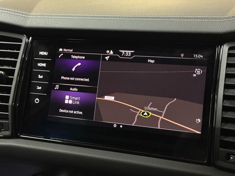 This 2022 Skoda Kodiaq TSI SportLine boasts a clear vehicle history, offering peace of mind alongside its impressive features. This seven seat, four wheel drive SUV is powered by a 2.0 litre petrol engine and meets Euro 6 emission standards. Inside, youll find Dual Zone Climate Control with a humidity sensor, ensuring comfort for all occupants, while the Rear View Camera aids with parking. Stay connected and entertained with SmartLink, compatible with both Android Auto and Apple CarPlay. The SportLine trim also includes KESSY keyless entry and start, and Full LED Matrix Headlights with adaptive and all weather lighting functions for enhanced visibility. Experience dynamic performance with the Kodiaq TSI SportLine, accelerating from 0 to 60 miles per hour in just 7.5 seconds. This swift acceleration demonstrates its capability compared to other vehicles in its class. The combination of its powerful engine, advanced lighting system, and four wheel drive ensures a confident and capable driving experience across various conditions, making it a well rounded choice for families and adventurers alike.