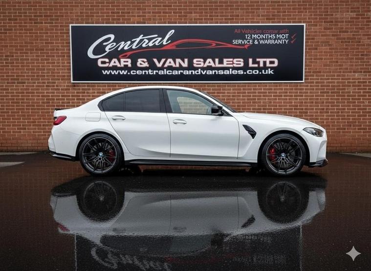 This 2025 BMW M3 BiTurbo Competition stands out with its comprehensive service history, most recently serviced on 2nd January 2026 at 59, 878 miles. This performance saloon features a powerful 3.0L petrol engine paired with a Four Wheel Drive drivetrain, ensuring dynamic handling and exhilarating performance. As a Euro 6 compliant vehicle, it meets modern emissions standards. The Competition trim level offers a refined driving experience, and this particular M3 comes with a 3 month warranty for your peace of mind. A 12 month MOT will be provided upon purchase, further demonstrating its roadworthiness. This BMW M3 BiTurbo Competition represents a compelling choice for those seeking a well maintained and high performing vehicle.