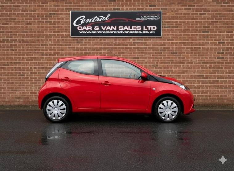 This 2015 Toyota AYGO VVT-i x-play boasts a single owner from new, offering you peace of mind. This well maintained vehicle comes with a 1.0L petrol engine and a 3 month warranty for added security. You will also receive 12 months MOT upon purchase, and the car benefits from partial service history. Inside, you'll find a comfortable cabin equipped with Air Conditioning to keep you cool, and Bluetooth connectivity for seamless music streaming and hands free calls. The OUTshield pack includes rear parking assistance sensors, making manoeuvring easier. The Toyota AYGO VVT-i x-play stands out with its exceptional fuel economy, achieving an impressive 69 mpg, which is significantly better than many other cars in its class. Its low CO2 emissions also contribute to lower running costs and environmental impact. Furthermore, this AYGO falls into a low insurance group, making it an economical choice for everyday driving.