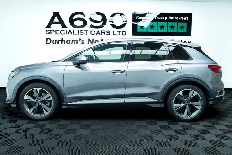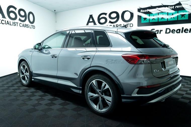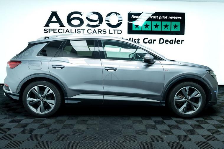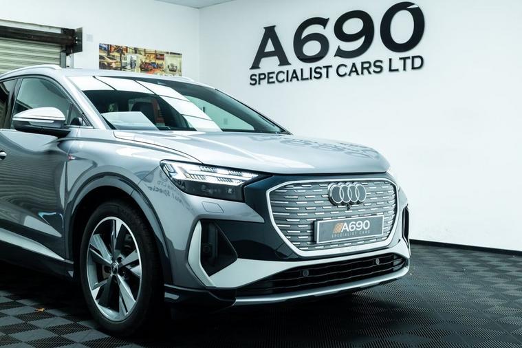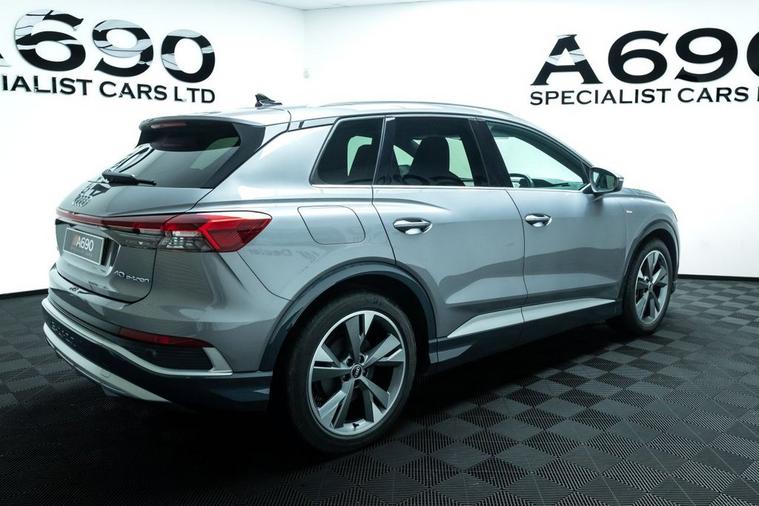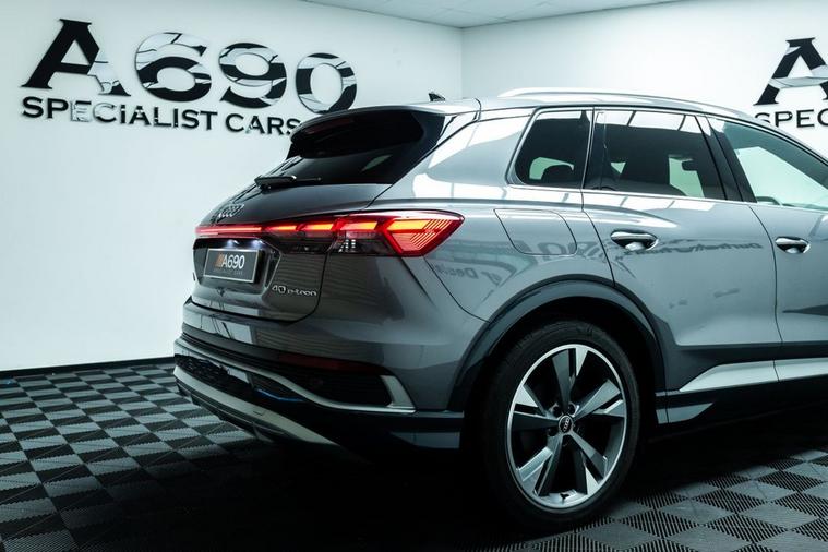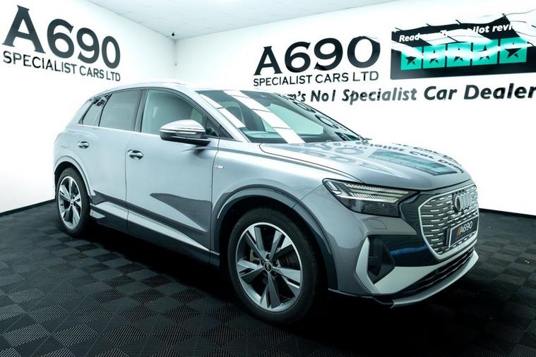 A690 Specialist Cars is proud to present this stunning 2021 Audi Q4 E-Tron 40 Launch Edition. Experience the future of driving with this stunning Audi Q4 e-tron, where progressive design meets premium comfort and zero-emissions performance. Powered by a smooth and responsive electric motor paired with an 82kWh battery, this advanced SUV delivers impressive range, instant torque and whisper-quiet refinement perfect for both daily commuting and longer journeys. The bold Audi styling is unmistakable, featuring sharp LED lighting, striking alloy wheels and a confident SUV stance that turns heads wherever you go. Step inside and youre welcomed by a beautifully crafted cabin finished with high-quality materials, ergonomic design and plenty of space for passengers and luggage alike. The Launch Edition specification ensures a generous level of equipment, including Audi Virtual Cockpit, intuitive MMI touchscreen infotainment, smartphone connectivity, dual-zone climate control and heated front seats for year-round comfort. Safety and driver assistance are equally impressive, with features such as adaptive cruise control, lane assist, front and rear parking sensors and a rear-view camera providing peace of mind on every journey. The elevated driving position offers excellent visibility, while the refined suspension delivers a smooth and composed ride. With automatic transmission, effortless acceleration and low running costs, the Q4 e-tron makes electric ownership simple and rewarding. Home charging and public fast-charging compatibility mean you can stay powered up with ease, while reduced maintenance make it an economical choice. If youre looking for a premium electric SUV that combines cutting-edge technology, luxury comfort and everyday practicality, this Audi Q4 e-tron 40 Launch Edition is the perfect choice. Stylish, efficient and future-ready this is electric driving, the Audi way.