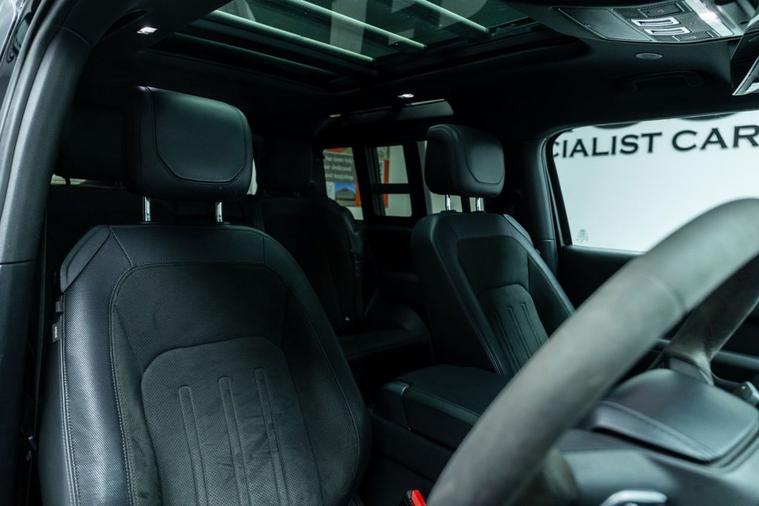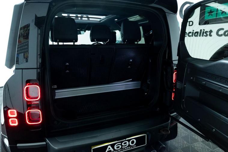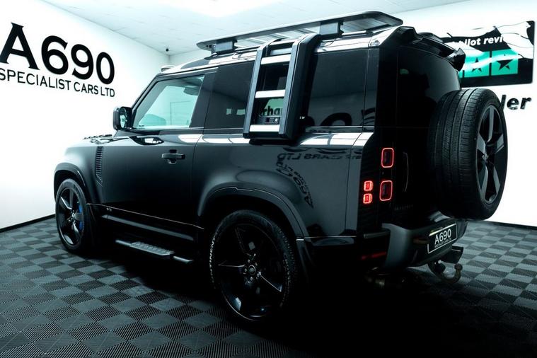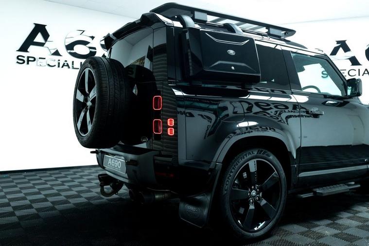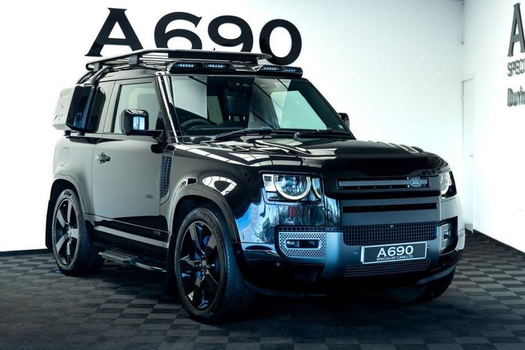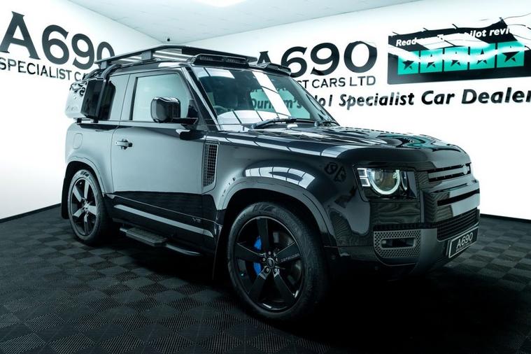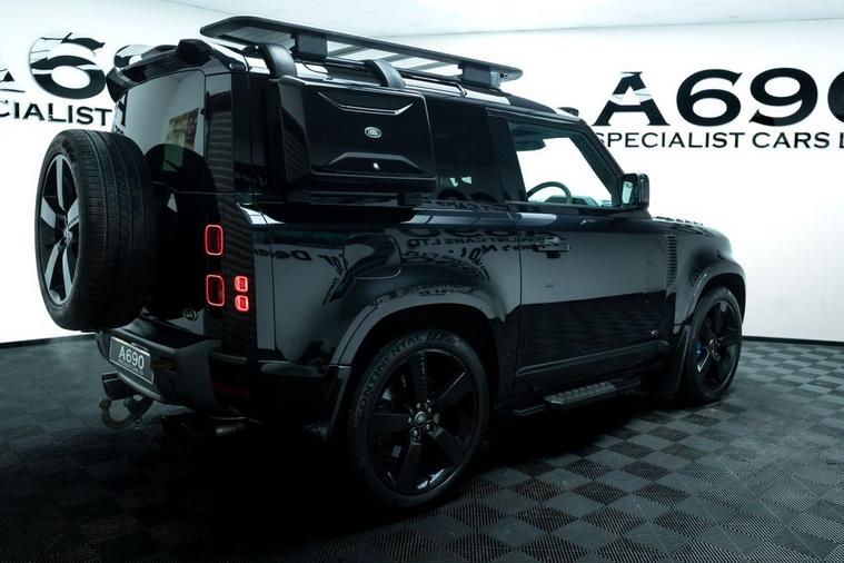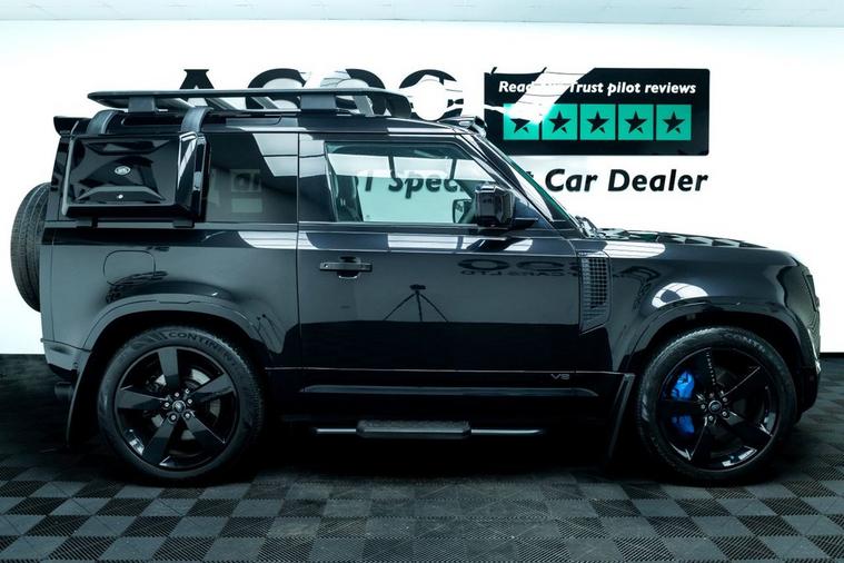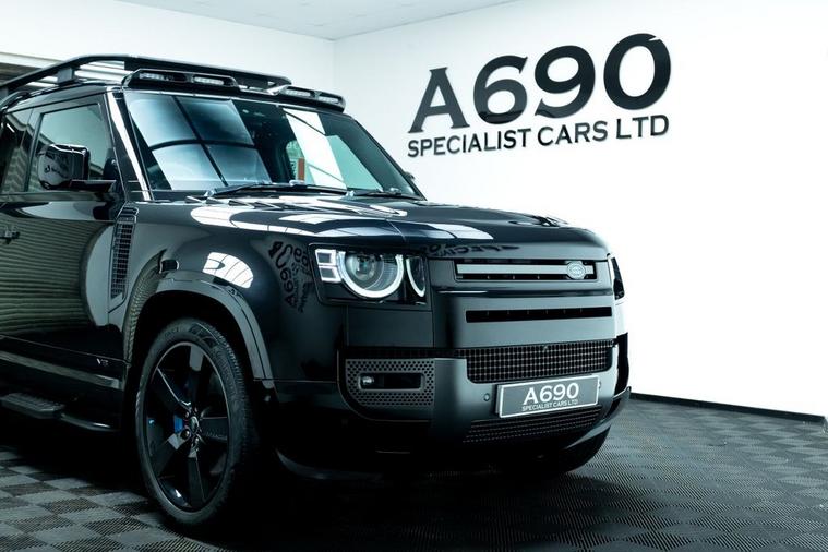 A690 Specialist Cars is proud to present this 2021 Land Rover Defender 90 5.0 P525 V8 in Santorini Black. Unleash pure power and uncompromising luxury with this exceptional Land Rover Defender, a modern icon engineered to dominate every road and trail. Beneath the sculpted bonnet sits a thunderous 5.0-litre supercharged V8 delivering an exhilarating 525 horsepower, seamlessly paired with a refined automatic transmission and intelligent 4WD system for breathtaking acceleration, confident handling, and effortless towing capability. This Defender blends legendary toughness with contemporary sophistication. Its bold exterior styling, signature LED lighting, muscular stance, and premium alloy wheels make an unmistakable statement wherever you arrive. Step inside and youre greeted by a beautifully appointed cabin featuring high-quality materials, advanced digital displays, intuitive infotainment with smartphone connectivity, premium audio, climate control, and a commanding driving position that ensures comfort on long journeys and visibility in challenging terrain. Factory specification includes Electronic Air Suspension, Slide & Tilt Panoramic Sunroof, Apple Carplay, Adaptive Cruise Control, Heated Suedecloth Steering Wheel, Heated Front Windscreen, Head-Up Display. The previous keeper spent over £9000 on cosmetic upgrade via URBAN Automotive. These include Gloss Black Side Storage, Luggage Rack, Roof Ladder, Front & Rear Mudflaps, Rear Roof Spolier, Carbon Fibre Light Bar with Lazer Linea & Defender Roof Rails. Advanced safety and driver assistance technologies provide peace of mind, including adaptive cruise control, lane assist, parking sensors, 360-degree camera, traction management systems, and multiple driving modes tailored for mud, sand, snow, and rock. Whether navigating city streets, motorway cruising, or exploring remote landscapes, this Defender adapts effortlessly to your lifestyle. With its impressive performance credentials, exceptional build quality, and unmistakable presence, the P525 V8 Defender offers a rare combination of luxury SUV refinement and true off-road capability. It is equally suited for daily commuting, weekend adventures, and making a bold statement wherever you go. Meticulously maintained and ready for immediate enjoyment, this vehicle represents outstanding value for buyers seeking power, prestige, and versatility in one remarkable package. Dont miss the opportunity to own one of the most desirable Defenders ever produced. Enquire today to arrange a viewing and experience the thrill, comfort, and confidence of driving a true modern legend. Finance options available, part exchange welcome, nationwide delivery arranged, and warranty packages can be tailored to suit your needs. Contact us to arrange a viewing & test drive.