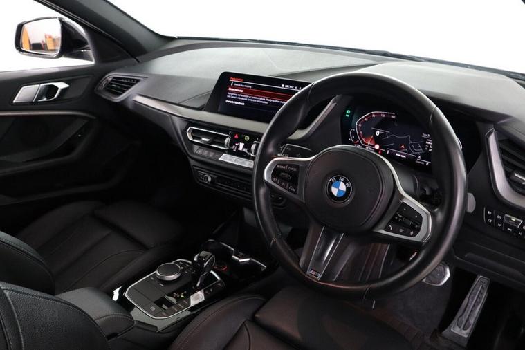 This 2021 BMW 1 Series 118i M Sport (LCP) offers a refined driving experience with its Euro 6 compliant 1.5 litre petrol engine. Finished in the sporty M Sport trim, this vehicle boasts Perforated Dakota Leather upholstery in Black with Grey Highlights, creating a premium feel. For convenience and safety, it includes a Rain Sensor with Automatic Headlight Activation, Park Distance Control for both the front and rear, and Cruise Control with Brake Function and Speed Limiter, which also features Adaptive Cruise Control. The BMW Live Cockpit Professional, complete with Bluetooth connectivity, ensures you stay connected on every journey. The 118i M Sport is designed to impress, accelerating from 0 to 62 miles per hour in just 8.8 seconds, demonstrating its spirited performance. This acceleration figure indicates a more engaging drive compared to many vehicles in its class. Furthermore, the generous boot space provides ample room for luggage or shopping, making it a practical choice for everyday use and longer trips alike.