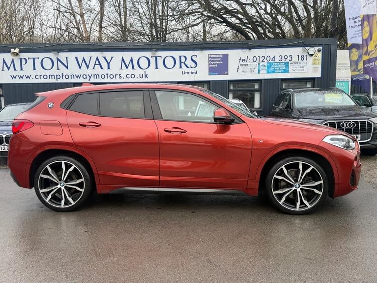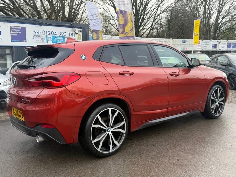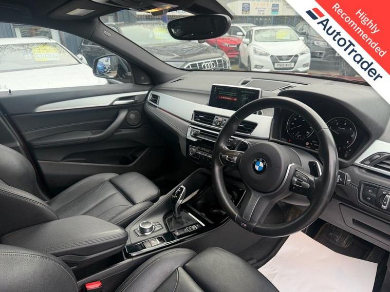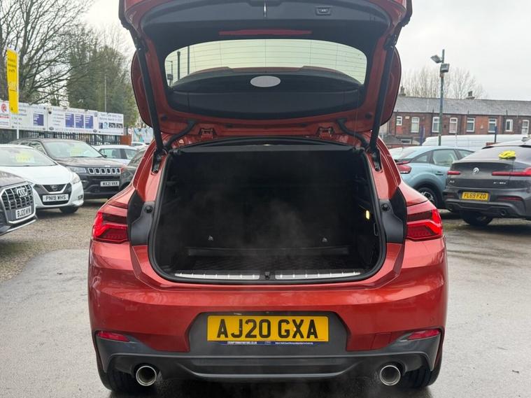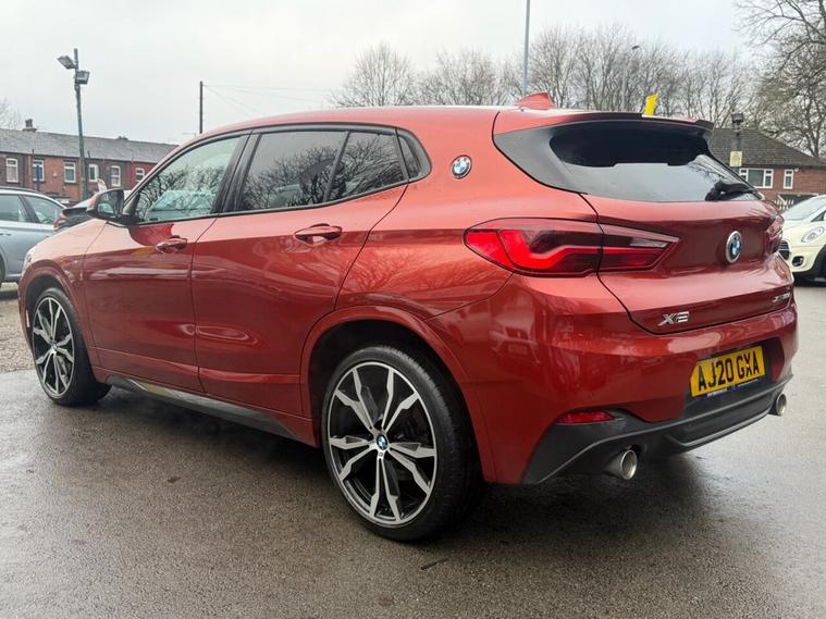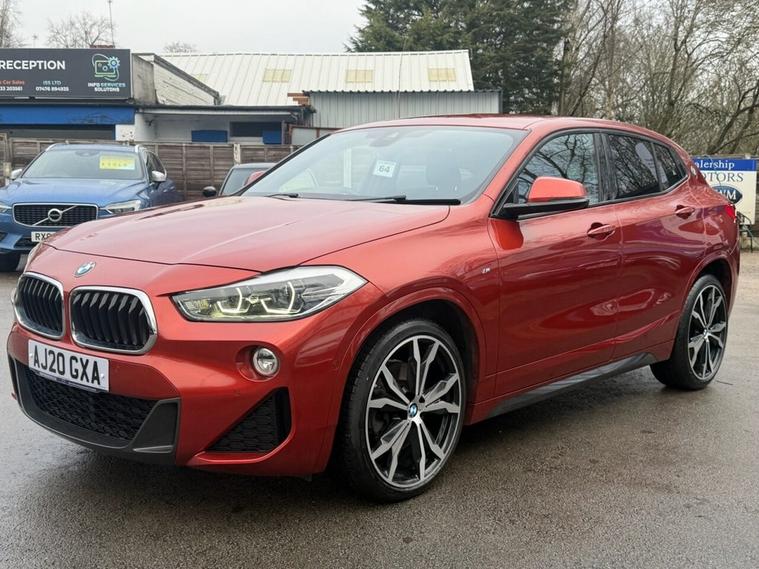 This 2020 BMW X2 20d M Sport boasts a full service history, ensuring excellent provenance. This four wheel drive model features a 2.0 litre Euro 6 diesel engine and is presented in the desirable M Sport trim. Notable features include the Vision Pack with parking assistance and a rear camera, the M Sport Plus Pack with a premium branded sound system, and striking 20 inch M Light Double Spoke 716M alloy wheels with run flat tyres. For added convenience and safety, it also benefits from front and rear Park Distance Control, including front and rear parking sensors. Experience impressive performance with this BMW X2, achieving 0 to 60 mph in just 7.7 seconds, a figure that demonstrates its capability compared to other vehicles in its class. Furthermore, its fuel economy is a significant advantage, delivering an outstanding 49 miles per gallon, making it an economical choice for your driving needs. This vehicle comes with a 6 month warranty and will be provided with a 12 month MOT for your peace of mind.