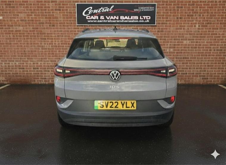 This 2022 Volkswagen ID.4 Pure Life has been meticulously maintained with a full service history, most recently serviced on 2024-07-08 at 50741 miles, and has had only one owner from new. This electric vehicle boasts a 55 kWh battery offering a maximum range of 213 miles when new. Charging is convenient, with a full charge at home taking approximately 7 hours and 30 minutes using a 7kW charger, and a rapid charge to 80% achievable in just 38 minutes at a public charging station. For your peace of mind, it comes with a 3 month warranty and a 12 month MOT provided on purchase. The ID.4 Pure Life is equipped with a host of desirable features designed to enhance your driving experience. Enjoy seamless connectivity with App Connect, offering wireless Apple CarPlay and Android Auto, alongside a wireless smartphone charger. Parking is made easier with the Driver Assistance Pack, including adaptive cruise control and front and rear parking sensors. Keyless entry, opening, and start systems add to the convenience, while Bluetooth connectivity keeps you connected on the go. Furthermore, this model offers a generous boot space, making it a practical choice for everyday use and longer journeys.