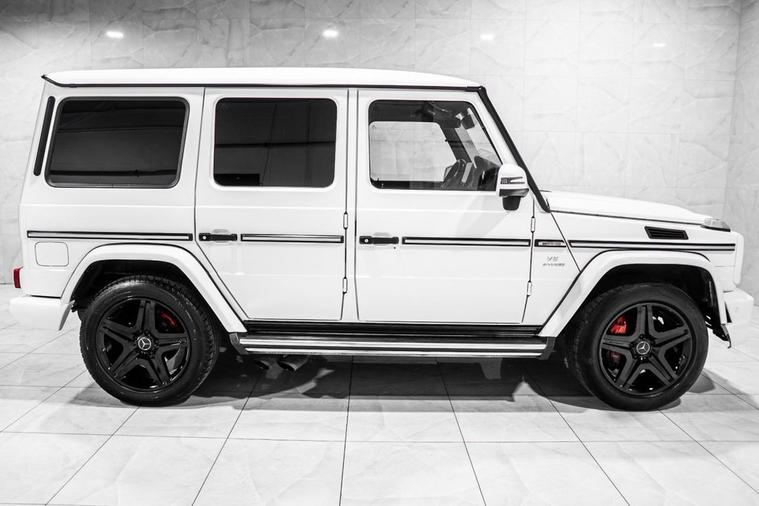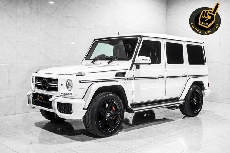 Finished in Calcite White we have a menacing Mercedes-Benz G63 AMG. This exquisite example has just two previous owners and comes with Mercedes-Benz service history present. As well as owning the roads on sumptuous 20inch alloy wheels, this G63 comes fitted with a plethora of luxury features, some of which include; panoramic sunroof, 7in colour display screen, AMG ride control sports suspension, privacy glass, Rear Entertainment, AMG bodystyling, dynamic select with a choice of driving modes, LED high performance headlights, heated memory leather seats, electronic stability programme, AMG performance exhaust, speedtronic cruise control with variable speed limiter, sports braking system, reverse assist camera, two zone automatic climate control, multifunctional leather steering wheel and a tyre pressure monitoring system. This exquisite vehicle was crafted to provide power, control and sheer thrill and this G63 certainly fits the description perfectly. The Calcite White finish gives this Mercedes a succulent exterior appearance contrasting its flamboyant Black leather interior making for a great balance within the aesthetics of the vehicle. The sharp and sleek bodystyling ensures you will have heads turning when and wherever you drive this high performance vehicle. Built for rocky terrain, this G63 has numerous attributes that make it certain for a thrilling driving experience.