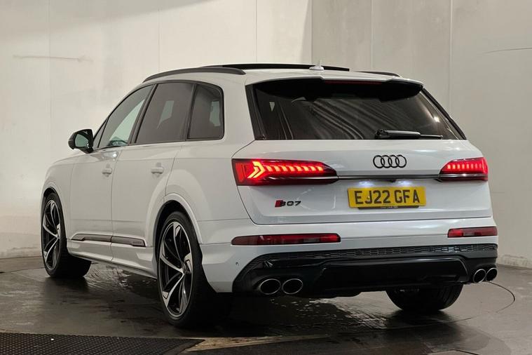 This 2022 Audi SQ7 TFSI V8 Vorsprung is a superb example, having had only one owner and boasting a clear vehicle history check. This impressive seven seat SUV features a powerful 4.0 litre petrol engine paired with Audis renowned four wheel drive system, ensuring excellent performance and grip. As a Euro 6 compliant vehicle, it meets modern emissions standards. The Vorsprung trim level signifies the highest specification, offering a wealth of premium features designed for comfort and convenience. The SQ7 TFSI V8 Vorsprung truly excels with its exceptional acceleration, reaching 0 to 60 miles per hour in a mere 4.1 seconds, a testament to its potent V8 engine. This performance is complemented by a large boot space, making it incredibly practical for families and adventurers alike. Further enhancing its appeal are features such as Deluxe Four Zone Automatic Climate Control for personalised comfort, a Head Up Display for effortless information access, and the Audi Parking System Plus with a 360 degree camera for stress free manoeuvring. The Comfort and Sound Package adds a premium branded sound system, while the Panoramic Glass Sunroof floods the cabin with natural light. With a substantial towing weight of 3500 kg, this Audi SQ7 is as capable as it is luxurious.