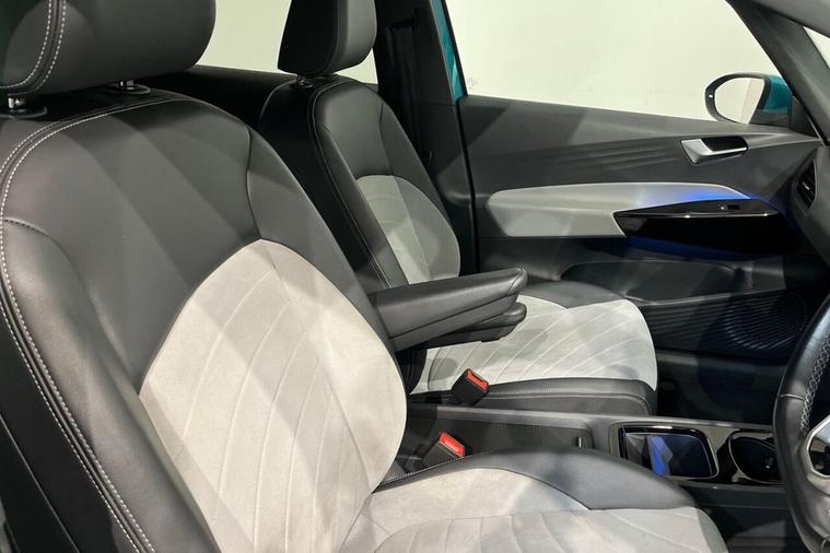 This 2023 Volkswagen ID.3 Pro Performance Life is a superb example, boasting a clear vehicle history and having had only one owner from new. As an electric vehicle, it offers a compelling blend of modern technology and practicality. This particular model features a 62 kWh battery, providing a maximum range of 265 miles when new, making it ideal for both daily commutes and longer journeys. Charging is convenient, with a full charge at home taking approximately 9 hours and 30 minutes using a 7kW charger, while rapid public charging can take you from empty to 80% in just 37 minutes. The ID.3 Pro Performance Life comes equipped with a range of notable features designed to enhance your driving experience. These include Adaptive Cruise Control with Front Assist and City Emergency Braking, ensuring a safer and more relaxed drive. Youll also benefit from a 1 Zone Climatronic system for comfortable cabin temperatures, front and rear parking sensors for easier manoeuvring, and All LED Headlights for superior visibility. The Comfort Package adds heated seats and a heated steering wheel, perfect for those colder days. This model also stands out with its impressive acceleration, reaching 0-60mph in a swift 7.3 seconds, and offers generous boot space for all your luggage needs.