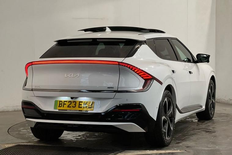 This 2023 Kia EV6 GT-Line S is a superb example, having had only one owner from new and boasting a clear vehicle history check. As an electric vehicle with Four Wheel Drive and a substantial 77 kWh battery, it offers an impressive maximum range of 300 miles, ensuring you can travel further on a single charge. Charging is convenient, taking approximately 12 hours and 30 minutes at home with a 7kW charger, while rapid public charging can take you from empty to 80% in just 20 minutes. This particular model comes with a wealth of notable features, including Remote Smart Park Assist with front and rear parking sensors, heated front seats, and a heated steering wheel for ultimate comfort. Stay connected and safe with Apple CarPlay with voice control and the Blind Spot View Monitor. The MOT is valid until May 2026. The Kia EV6 GT-Line S stands out with its exceptional performance, accelerating from 0-60mph in a swift 5.2 seconds, demonstrating its dynamic capabilities. This acceleration figure indicates a more responsive driving experience compared to many other vehicles in its class. Furthermore, the generous boot space provides ample room for all your luggage and shopping needs, making it a practical choice for families and individuals alike. The combination of its extensive electric range, rapid charging capabilities, and advanced technology makes this EV6 a compelling option for those seeking an efficient and well equipped electric car.