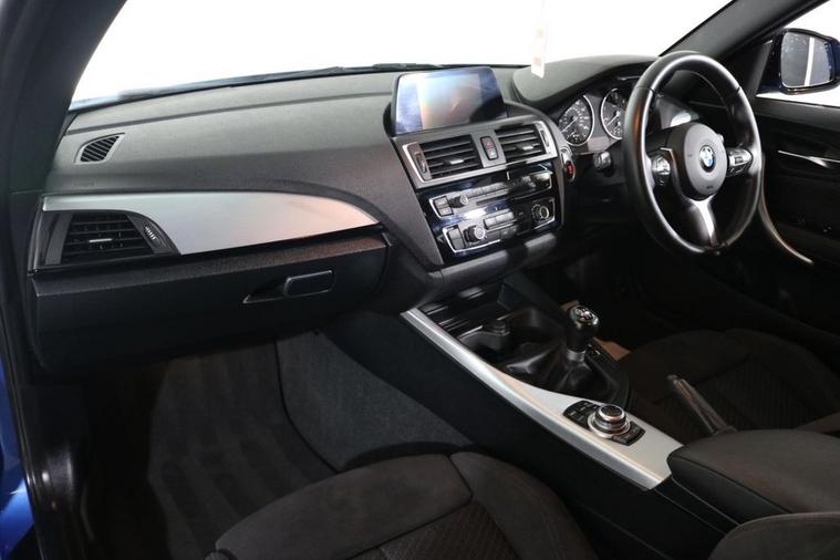 This desirable BMW 118d M Sport finished in Estoril Blue looks fantastic complemented by LED Running Lights, 18 inch Ferric Grey Type 461M Alloy Wheels, M Sport Body Styling, and Rear Privacy Glass. Find your way with integrated SATELLITE NAVIGATION with LCD Display. Park in ease with REAR PARKING SENSORS. Keep connected with ENHANCED BLUETOOTH Phone System with USB port and Voice Control. Listen to your music through DAB Digital Radio. Comfortable to drive with Auto CLIMATE CONTROLLED AIR CONDITIONING and Speed Limiting Function. Well equipped with Auto Headlights and Rain-Activated Wipers. Also fitted with ISOFIX seats, Multifunctional Steering Wheel, Drive Performance Control, Switchable Ambient Lighting, Alarm and Remote Door Locking with 2 x keys. Buy in confidence with JUST 2 OWNERS from new and SERVICE HISTORY with 5 x Documented Services.