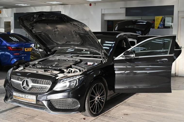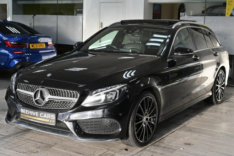 DRIVE AWAY TODAY OR HOME DELIVERY ANYWHERE IN MAINLAND UK FINANCE & PART EXCHANGE ARRANGED ONLINE **7 DAY MONEY BACK GUARANTEE** Nice spec Mercedes c250 d amg line premium in metallic black with service history sat nav cd dab radio bluetooth media usb reverse camera panoramic glass roof full leather seats with armrest heated seats electric memory seats electric folding door mirrors front and rear parking aid sensors xenon lights eco comfort sport individual driving modes flat bottom steering wheel with f1 style paddleshifts electric push button tailgate push button start stop alloys privacy