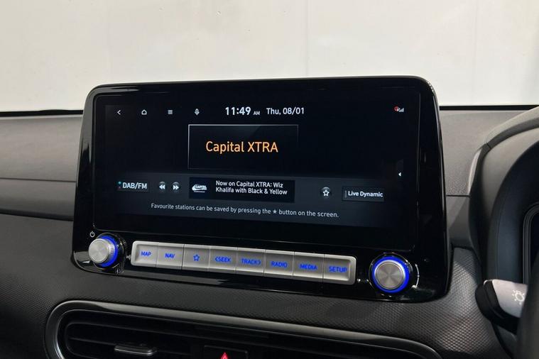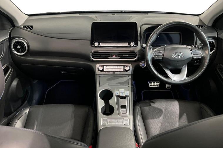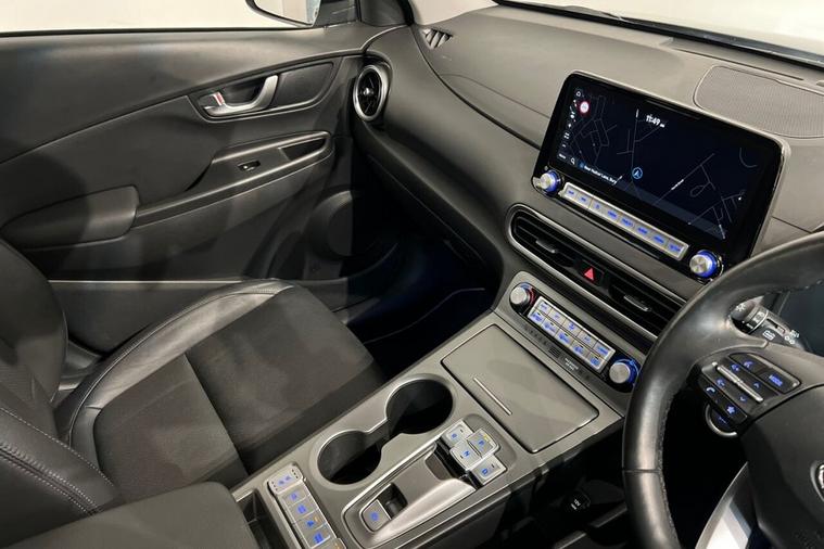 This 2022 Hyundai KONA Ultimate Electric boasts exceptionally low mileage for its age, having covered just 17, 100 miles, and comes with a clear vehicle history check. As an Ultimate trim, this electric KONA offers a substantial battery capacity of 68 kWh, providing a maximum range of 300 miles when new. Enjoy the convenience of a heated steering wheel, a head up display for easy viewing of key information, and seamless phone connectivity with Android Auto. The smart adaptive cruise control with stop and go function makes journeys more relaxed, while the wireless phone charging pad keeps your devices powered up without cables. The impressive 300 mile range from new highlights how this KONA Electric is better equipped for longer journeys compared to many other electric vehicles. Charging is also efficient, with a full charge at home using a 7kW charger taking approximately 10 hours and 16 minutes, and a rapid charge from empty to 80% achievable in just 53 minutes at a public charging station. This combination of extensive range, convenient charging options, and a wealth of premium features makes this Hyundai KONA Ultimate a compelling choice for electric motoring.
