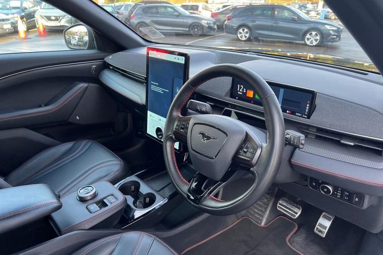 This 2023 Ford Mustang Mach E Extended Range is a superb example, having had only one owner from new and boasting a clear vehicle history check. This electric vehicle, with its Four Wheel Drive drivetrain, offers an impressive battery total capacity of 99 kWh, providing a maximum range of 335 miles on a full charge. Convenience is key with the E-Latch Keyless Entry System, complete with B-Pillar Keypad Access, and you can enjoy a comfortable cabin thanks to the Dual Zone Electronic Automatic Temperature Control. The Tech Pack Plus enhances the experience further, including an opening Panoramic Sunroof, a 360 Degree Camera for effortless parking, and a Premium Branded Sound System. For added comfort on colder days, the Heated Steering Wheel is a welcome addition. Experience exhilarating performance with the Mustang Mach E, capable of accelerating from 0-60mph in just 5.8 seconds, a highlight that sets it apart from many other electric vehicles. When it comes to charging, a full charge at home using a 7kW charger takes approximately 14 hours and 36 minutes, while the fastest public charging can take you from empty to 80% in a swift 51 minutes. These charging times, combined with its extensive range, make this electric Ford a practical and exciting choice for your daily journeys and longer trips.