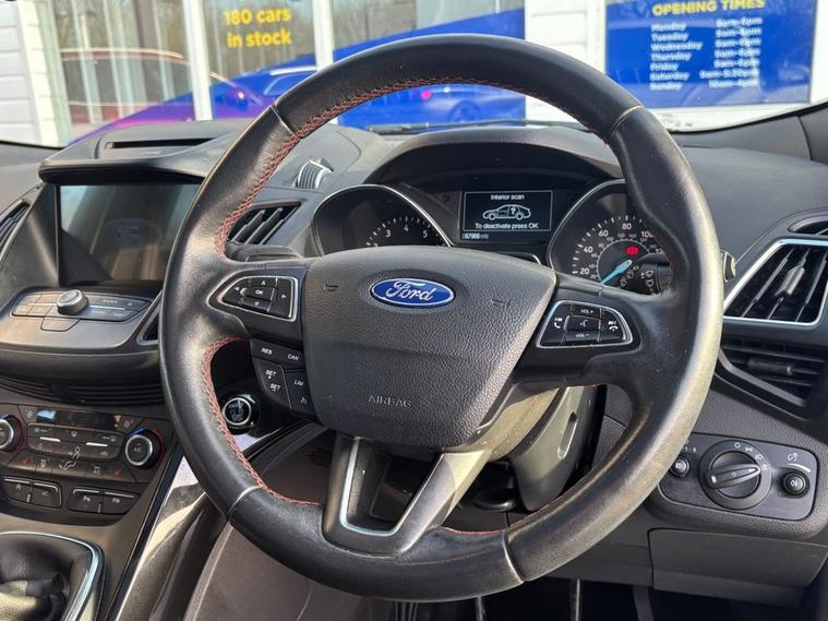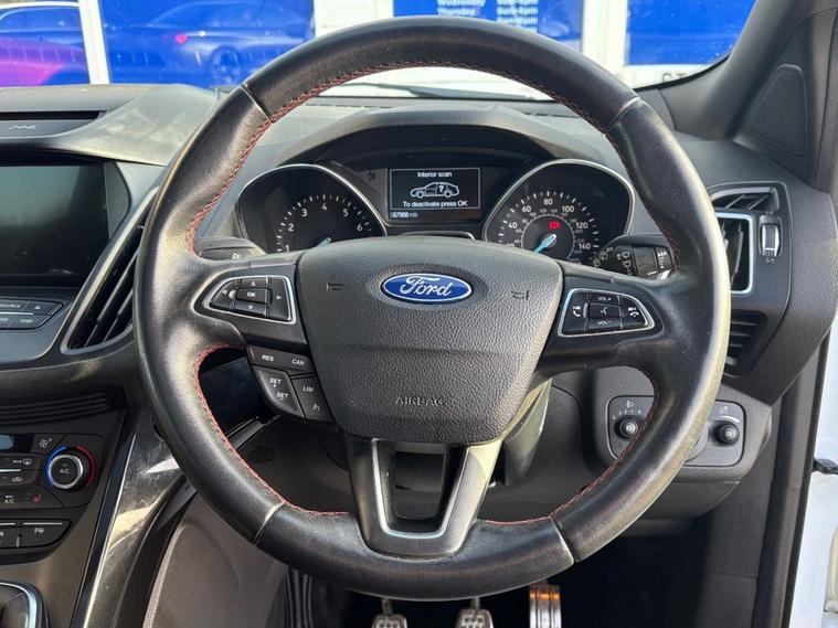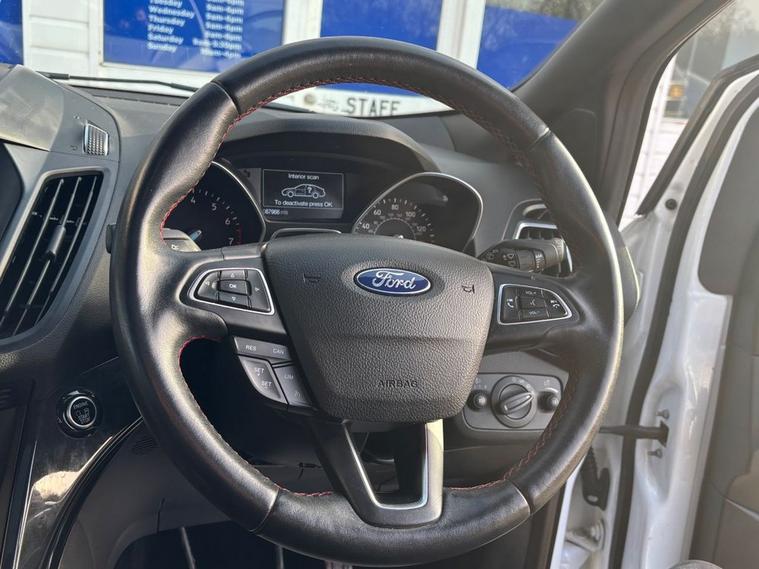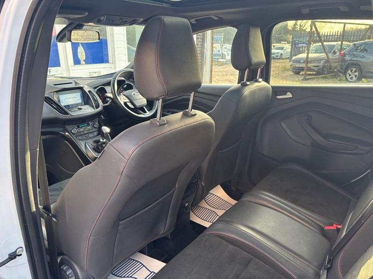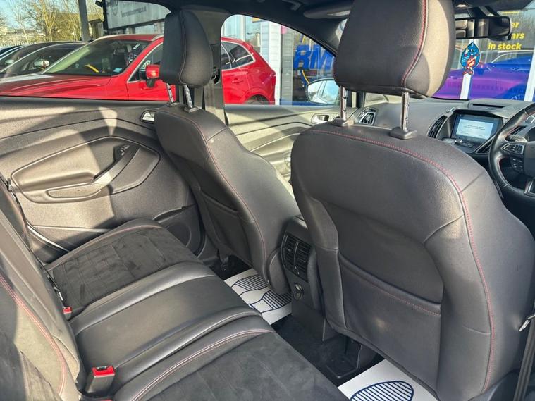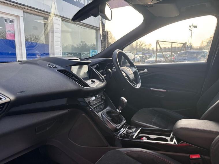 This 2018 Ford Kuga T ST Line X comes with 2 keys, Full Service History including Main Dealer and will also have a fresh service from our in house technicians along with a minimum MOT of 8 months. The car has covered only 67, 700 miles and is in great condition. The vehicle has undergone an extensive PDI check along with a 50 mile road test and performs as expected.. This Euro 6 compliant 1.5 litre petrol model combines sporty ST Line X styling with practical features for everyday driving. Inside, you will find a Ford SYNC3 DAB Navigation System complete with Android Auto and Apple CarPlay for seamless smartphone integration, alongside Bluetooth connectivity. For added comfort, both the driver and passenger seats are heated, featuring heated cushions and seat backs. Navigating tight spaces is made easier with rear parking sensors and the enhanced active park assist system, which also includes front parking sensors. These features demonstrate how this Kuga is equipped to offer a more convenient and comfortable driving experience compared to other vehicles in its class.