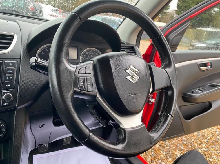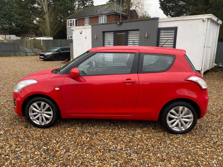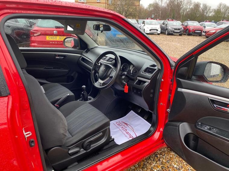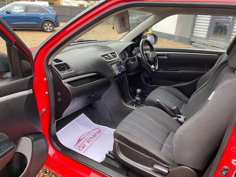ONLY 44, 332 MILES+£35 A YEAR ROAD TAX+LONG MOT UNTIL 21.10.2026+MAIN DEALER SERVICE HISTORY+RADIO-CD-MP3 PLAYER+BLUETOOTH+AIR-CONDITIONING+HALOGEN HEADLIGHTS+BRIGHT RED PAINT+16 INCH ALLOY WHEELS. At Haverhill Car Xchange we would like to offer you our LOW MILEAGE Suzuki Swift SZ3 Hatchback which has been finished in a Bright Red paint with Charcoal Grey-Light Grey cloth upholstery. Specification Includes Radio-CD-MP3 Player, Bluetooth Integrated into Audio Unit, USB Socket, Front Accessory Socket, Air-Conditioning, Gear Shift Indicator, Electric Front Windows with Drivers Side Auto-Down, Body Coloured Bumpers/Door Handles/Door Mirrors, Halogen Headlights, LED Daytime Running Lights, Front Fog Lights, High Mounted Rear Break Light, 3-Spoke Leather Steering Wheel, Side Impact Protection Beams, 16 Inch Alloy Wheels, Power Steering, Childproof Rear Door Locks, ABS Breaking System, Airbags, Alarm, Immobiliser, Remote Central Locking and ISOFIX Anchorage Points for Child Seats.