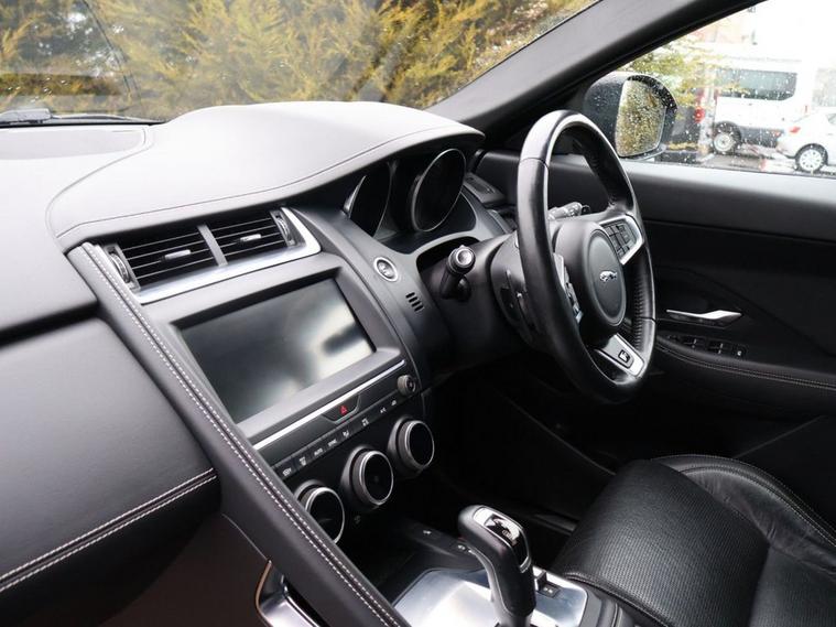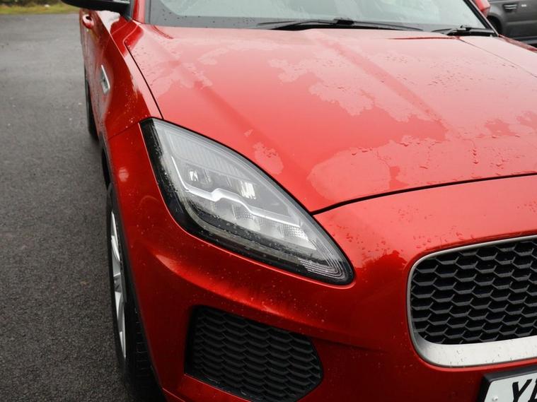 This 2018 Jaguar E-PACE D180 R-Dynamic S has been well cared for by its two former keepers and a good service history. This E-Pace offers a compelling blend of style and performance. Featuring a robust 2.0L diesel engine and Four Wheel Drive, this Euro 6 compliant model ensures efficient and capable driving. The R-Dynamic S trim enhances its sporty appeal, while practical features like LED headlights with signature daytime running lights, a rear view camera, and automatic headlights add to the driving experience. For added convenience, it includes a Park Pack with front and rear sensors, and Bluetooth connectivity for seamless integration of your devices. The Jaguar E-PACE D180 R-Dynamic S boasts impressive acceleration, reaching 0-60mph in just 8.6 seconds, demonstrating its dynamic capabilities. This performance, combined with its substantial boot space, makes it a versatile choice for both daily commutes and longer journeys. These attributes highlight how this particular E-PACE stands out from other vehicles in its class, offering a superior combination of speed, practicality, and sophisticated Jaguar design.