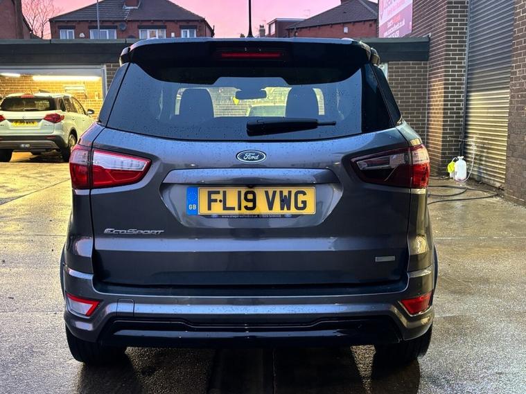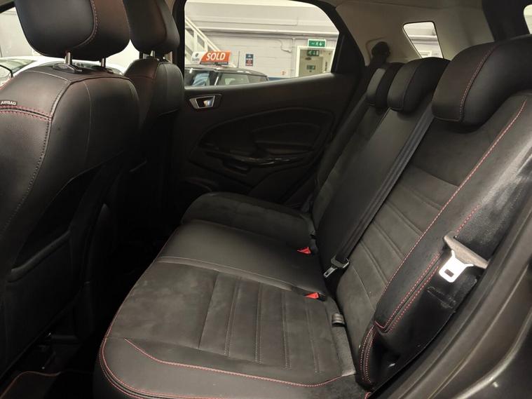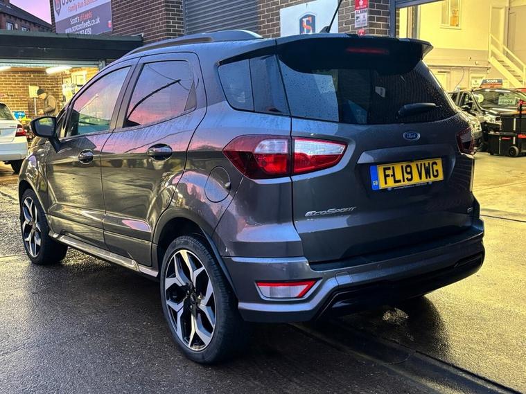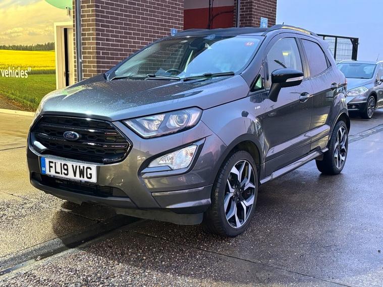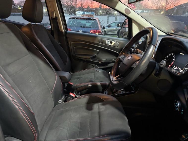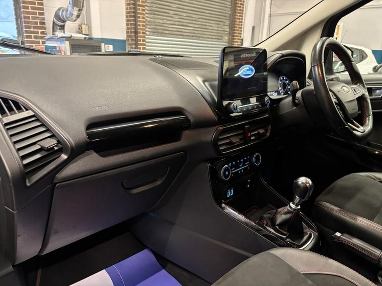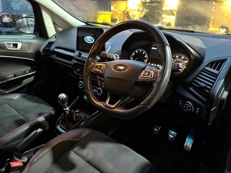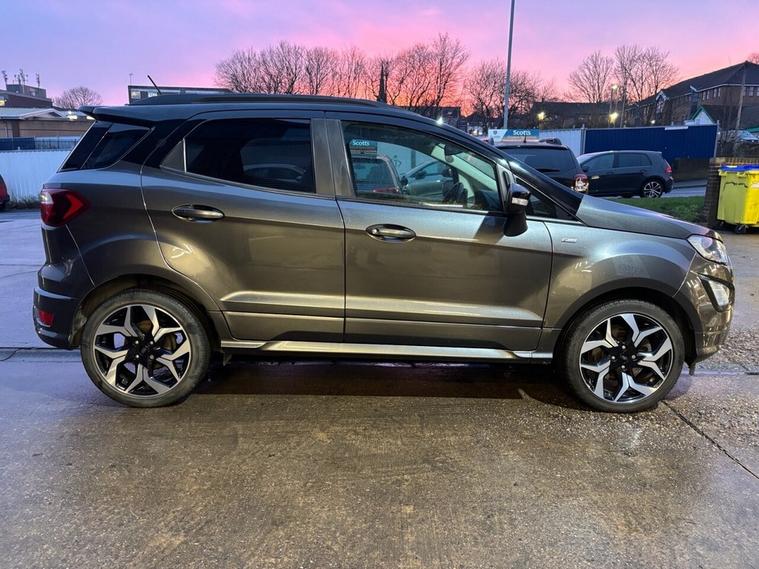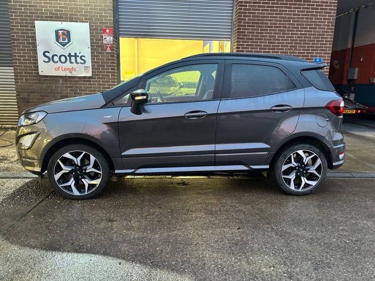Scotts of Leeds used Car Sales are pleased to offer this FORD ECOSPORT 1.0T EcoBoost GPF ST-Line SUV 5 Door Petrol Manual in Grey. The car is in good condition throughout, in a lovely colour combination and a great specification including Satellite Navigation, Cruise control, Speed limiter, DAB radio, Bluetooth, apple carplay, USB point, reverse camera, Rear parking sensors, Heated Half leather seats, Heated steering wheel, automatic lights, alloy wheels, privacy glass, Electric windows, Pushbutton start, isofix and much much more. 1 Former Keeper supplied with an up to date service record including 5 services having just been serviced in our Workshop, an MOT until January 2027 and 2 Keys ready to drive away. 3 MONTH NATIONWIDE WARRANTY provided with all vehicles. NATIONWIDE DELIVERY also available. A guaranteed 12 Months MOT can be added for an extra £100. DISCLAIMER: The above specification is true and correct. Any other specification listed elsewhere can sometimes be incorrect. Please check with Sales Executive to clarify this if needed prior to purchase.