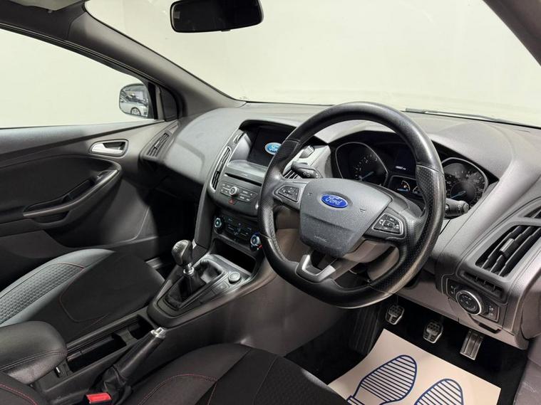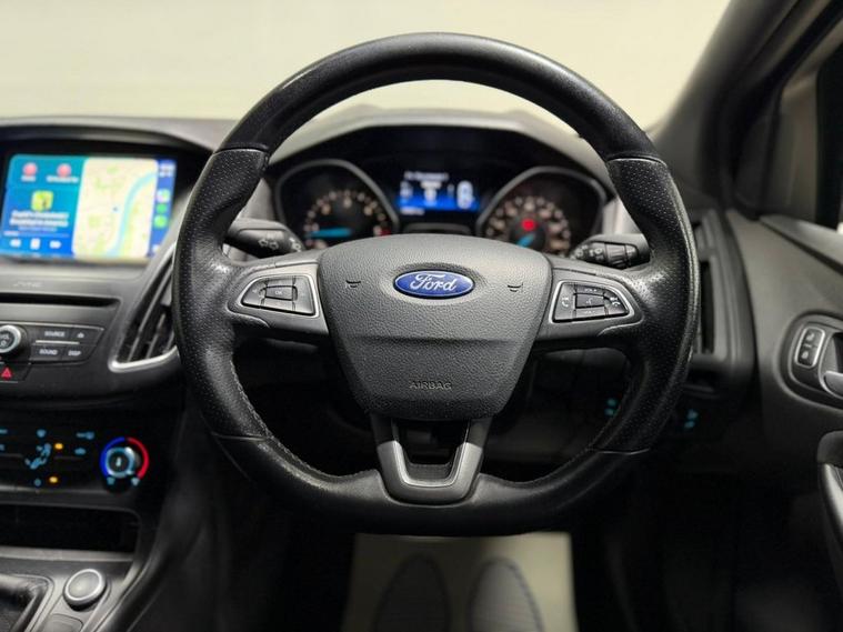 ** FULL SERVICE HISTORY ** NATIONWIDE DELIVERY ** APPLE CARPLAY ** BLUETOOTH ** FRESH SERVICE ** 1 YEAR MOT ** 3 MONTH WARRANTY ** 12 MONTH BREAKDOWN COVER ** The Ford Focus 1.5 TDCi ST-Line Hatchback delivers a striking sporty presence with 18-inch Rock Metallic alloy wheels, ST-Line body styling, and black exterior detailing including headlamp surrounds and upper door lines. A body-coloured front styling kit with centre aero foil, side skirts, and a large rear spoiler enhance its dynamic look, while halogen headlights, front fog lights, and heated, electrically adjustable mirrors add everyday practicality. Inside, the cabin features sports-style front seats, a black woven headliner, leather-trimmed gearshift and handbrake, and stainless steel ST-Line scuff plates. Technology highlights include the SYNC 3 system with 8-inch touchscreen, DAB audio and navigation, colour TFT instrument display, and Ford Power start button. Driving confidence is supported by sports suspension, torque vectoring control, independent front and rear suspension, ESP with traction control and emergency brake assist, tyre pressure monitoring, and Fords Intelligent Protection System, delivering a well-balanced blend of performance, comfort, and safety.