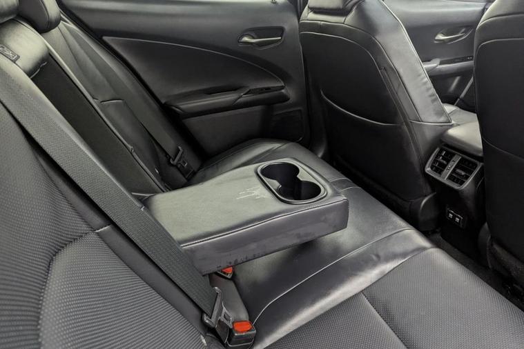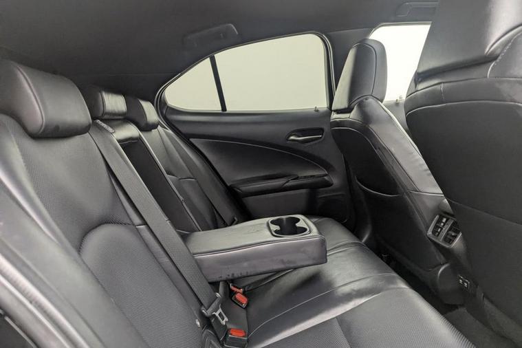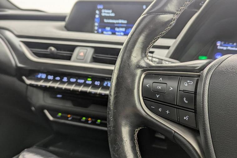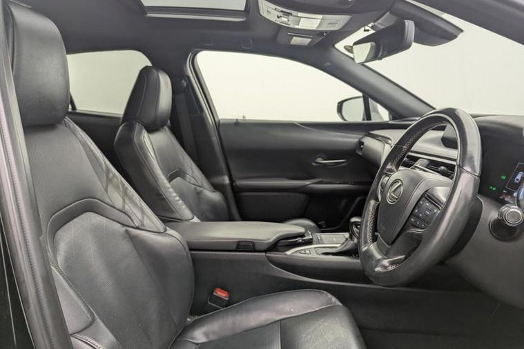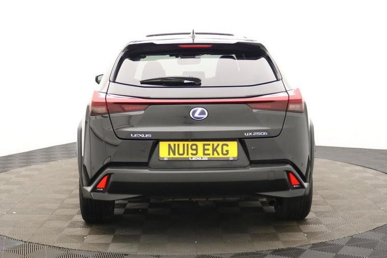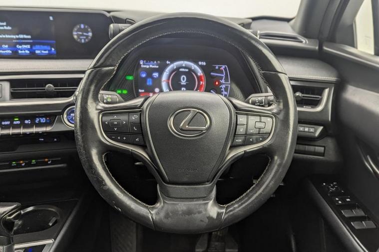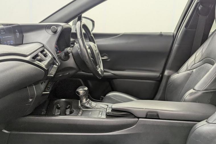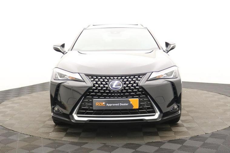 Henson Car Store presents the LEXUS UX 2.0 250h SUV 5dr Petrol Hybrid E-CVT E-FOUR Euro 6 (s/s) finished in Black, this car comes with service history and is VAT qualifying. This 2019 Lexus UX 250h offers a unique ownership proposition, having been meticulously maintained by just one owner since new. This stylish compact SUV boasts a sophisticated 2.0 litre petrol hybrid engine paired with a smooth four wheel drive system, ensuring efficient and capable performance. As a Euro 6 compliant vehicle, it also benefits from low CO2 emissions, making it an environmentally conscious choice. Experience enhanced convenience and comfort with this Lexus UX. It features Bluetooth mobile phone connectivity for seamless calls and audio streaming, alongside a helpful reversing camera with back guide lines to assist with parking. The Premium Plus Pack adds further desirability with keyless entry, front and rear parking sensors, heated seats, and a heated steering wheel for those colder journeys. Automatic LED headlights with Auto High Beam functionality provide excellent visibility, while the dual zone climate control air conditioning system ensures a pleasant cabin temperature for all occupants. The 0-60mph acceleration in just 8.7 seconds demonstrates a responsive driving experience, highlighting how this Lexus UX 250h offers a refined and efficient way to travel.