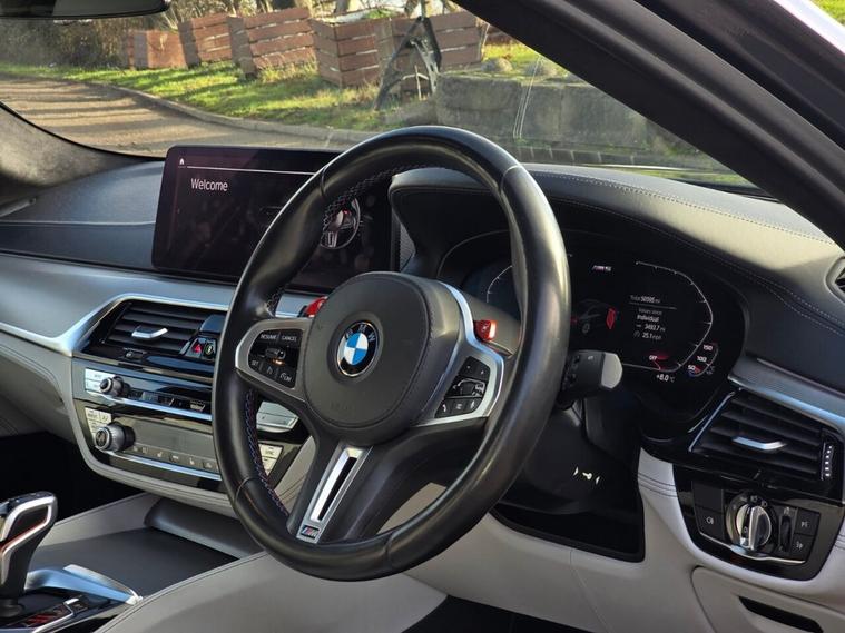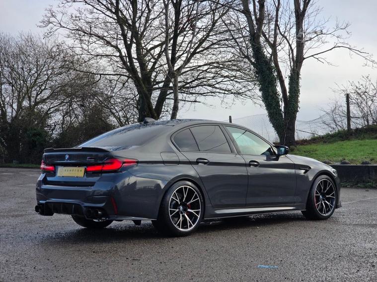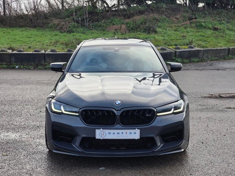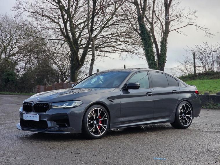 Presented by Hampton Car Sales, a trusted independent dealer with over 220 verified five-star Google reviews, this outstanding BMW M5 4.4i V8 Competition Saloon offers the perfect blend of supercar performance and executive luxury. Finished in the highly desirable Brands Hatch Grey and complemented by a stunning full Merino leather interior in Silverstone and black, this 625ps xDrive saloon has covered 50, 595 miles and is backed by a full service history, including the all-important running-in service completed on time. As standard, the M5 Competition benefits from BMWs twin-turbocharged V8, Steptronic transmission, intelligent xDrive all-wheel drive system, adaptive M suspension, M sport differential, high-performance braking system and a driver-focused cockpit with advanced infotainment, navigation, digital displays and premium audio, delivering both everyday usability and exceptional driving engagement. In addition, this example is enhanced by a wide range of BMW factory options designed to elevate comfort, technology and performance, making it a truly complete specification. The car is further improved with tasteful modifications including wheel spacers (£350) for an enhanced stance, a full carbon body kit (£2, 500) adding a more aggressive presence, carbon exhaust tips (£250) and a Ghost immobiliser (£500) for added security. Supplied with BMW warranty until April 2026, which can be transferred to the next owner, this is a superb opportunity to acquire a meticulously maintained and exceptionally well-specified M5 Competition. Finance solutions are available and part exchanges are very welcome.