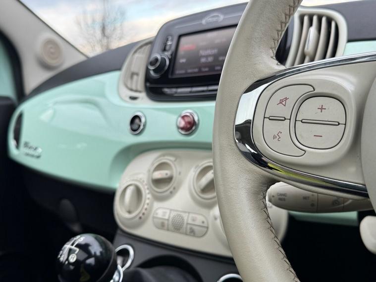 Stunning Fiat 500 1.2 Lounge Finished In Smooth Mint - Ideal First Car Due Low Insurance Group (8) - Low Running Costs With Up To 46 MPG - LEZ Compliant - Car Has Been Well Looked After And Cared For & Benefits From a Full Service History - Specification Includes 5 Touchscreen - Radio With DAB-Aux-USB - Bluetooth - Chrome Kit - Air Con - Cloth-Black-Light Grey-Ivory With Ivory Ambience - Cruise Control - Fixed Glass Roof With Sunblind - Front Seats With Memory Function - LED Daytime Running Lights - Rear Parking Sensors - ISOFIX Attachment Points On Rear Seat - 15 Alloys - 2 Keys Present - Car Comes Fully Serviced And With Long MOT To 10/26 - 1 Months Parts & Labour Warranty Included - Call & Secure This Car Today With A Low Deposit Of £95 !