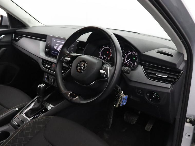 Discover this 2021 Skoda Kamiq TSI SE with exceptionally low mileage for its age, having covered just 17820 miles. This Euro 6 compliant model boasts a clear vehicle history check, offering peace of mind. It features a responsive 1.0 litre petrol engine and comes equipped with essential technology for your convenience, including Bluetooth connectivity and Wireless Smartlink for seamless integration of Apple CarPlay and Android Auto. Youll also find basic LED headlights with distinctive LED daytime running lights, manual air conditioning with a pollen filter, and rear parking sensors to assist with manoeuvring. This Skoda Kamiq stands out with its impressive fuel economy, achieving an excellent 48 miles per gallon, which indicates it is more economical than many similar vehicles. Furthermore, its low insurance group and low CO2 emissions highlight its cost effectiveness and environmental consideration compared to other cars in its class. This SE trim level offers a well rounded package for everyday driving.