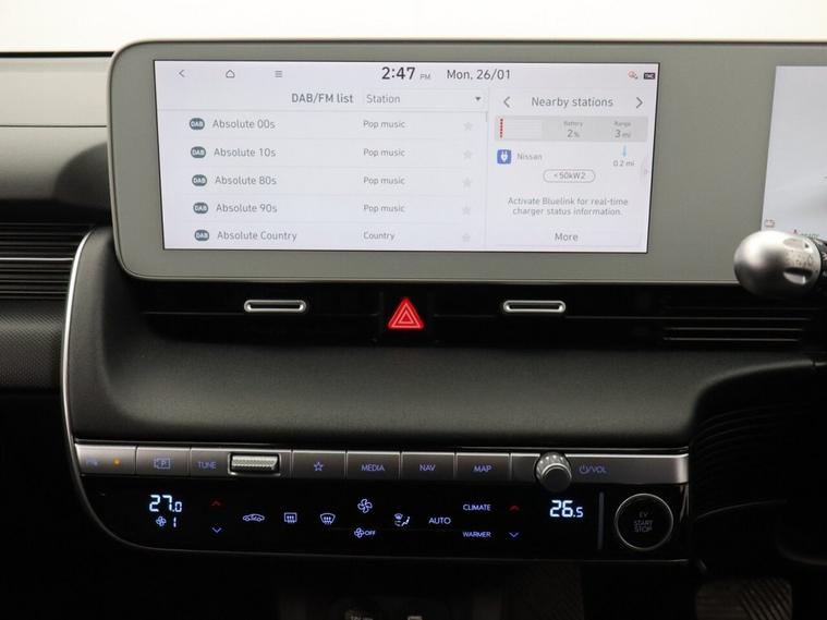 This 2021 Hyundai IONIQ 5 Premium boasts a full dealership service history and has had only one owner from new, ensuring excellent provenance. This electric vehicle features a substantial 73 kWh battery, offering a maximum range of 298 miles when new. For convenience, it can be fully charged at home using a 7kW charger in approximately 10 hours and 53 minutes, while rapid public charging can take it from empty to 80% in a swift 17 minutes. The car is equipped with dual LED headlamps, parking distance warning sensors front and rear, and blind spot collision avoidance assist for enhanced safety and awareness. Inside, youll find heated rear outer seats for passenger comfort and phone connectivity with Apple CarPlay. The IONIQ 5 Premium stands out with its impressive 298 mile maximum range, indicating its capability for longer journeys compared to many other electric vehicles. Its large boot space provides ample room for luggage or shopping, making it a practical choice for families or those who need extra storage. The vehicles MOT is long, offering peace of mind for the next owner. This combination of extensive range, generous practicality, and comprehensive features makes this IONIQ 5 a compelling option in the electric car market.