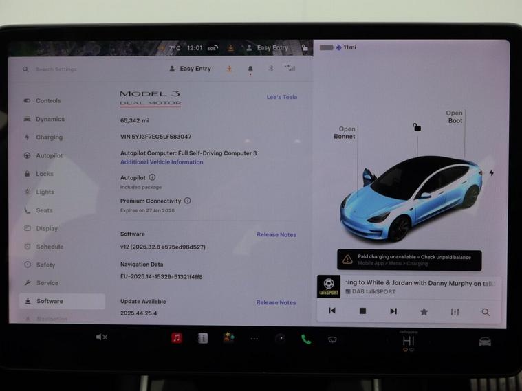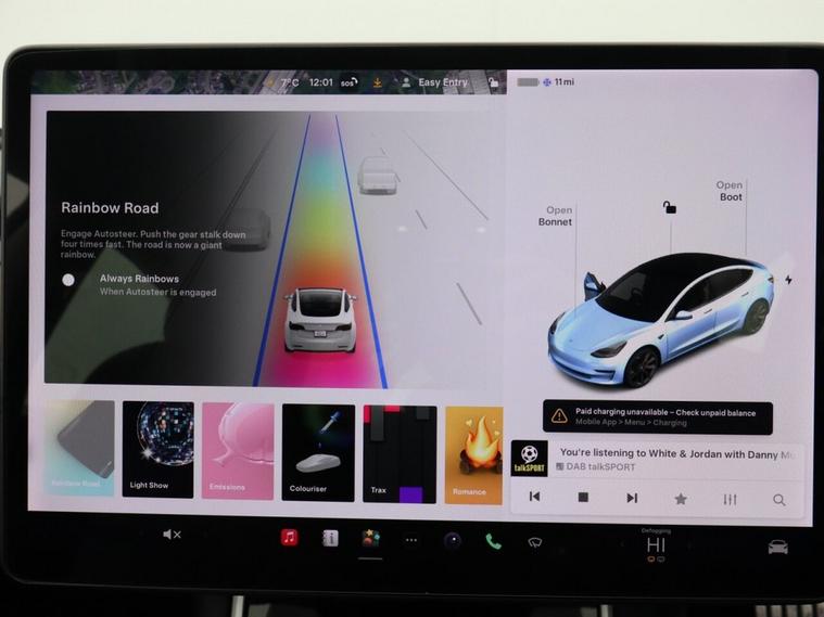 This 2020 Tesla Model 3 Performance offers impressive electric performance with its Four Wheel Drive system and a substantial 82 kWh battery, providing a maximum range of 329 miles when new. This electric vehicle is ready for the road with its long MOT. Inside, youll find a fixed panoramic glass roof, dual zone climate control, and 12 way power adjustable front and rear heated seats for ultimate comfort. For added safety and convenience, it includes adaptive cruise control and blind spot information. Experience exhilarating acceleration with the Model 3 Performance, capable of reaching 0 to 60 mph in just 3.2 seconds, demonstrating its superior performance compared to other vehicles in its class. Charging is efficient, with a full charge at home taking approximately 12 hours using a 7kW charger, and a rapid charge to 80% achievable in just 26 minutes at a public charging station.