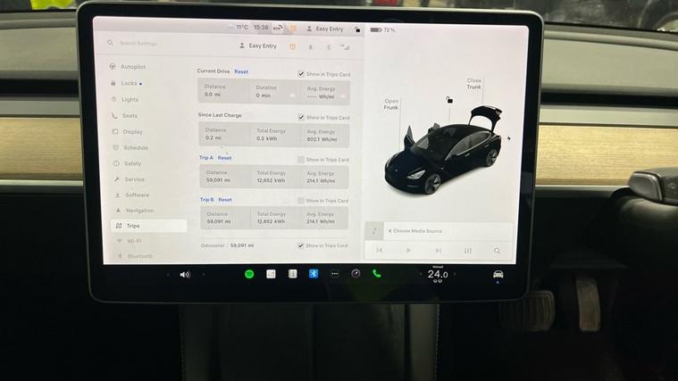 This 2021 Tesla Model 3 Standard Range Plus presents a superb ownership opportunity, having been meticulously maintained by just one owner since new. As a fully electric vehicle, it boasts a 53 kWh battery offering an impressive maximum range of 278 miles when new. Charging is convenient, with a full charge at home using a 7kW charger taking approximately 7 hours and 10 minutes, while rapid charging to 80% on a public charger can be achieved in as little as 29 minutes. This Model 3 also benefits from a long MOT, providing peace of mind. Inside, youll find a host of desirable features designed to enhance your driving experience. These include a Bluetooth connection for seamless audio and calls, Blind Spot Information to aid awareness, and a fixed panoramic glass roof that floods the cabin with light. Comfort is assured with air conditioning, and parking is made easier with a front park assist camera. The generous boot space offers ample room for luggage or shopping, making this Tesla Model 3 a practical and sophisticated choice for everyday journeys.