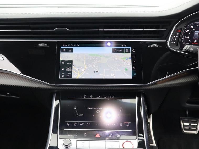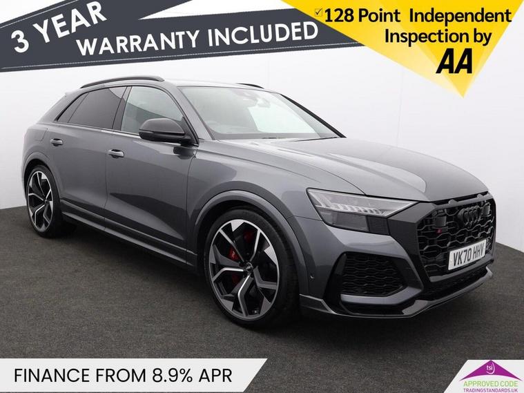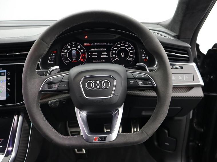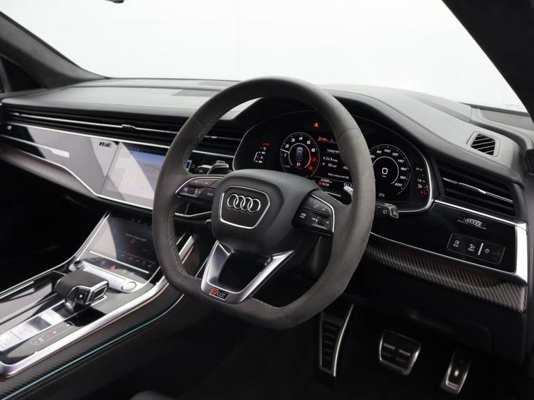 Oakwood Motor Company are delighted to offer this exceptional Audi RSQ8 4.0 TFSI V8 Vorsprung SUV, finished in the striking Daytona Grey. Boasting a full Audi service history, this high-performance SUV combines exhilarating power with cutting-edge technology and luxurious comfort. The exterior is enhanced by 23-inch 5-Y-Spoke Rotor Design alloy wheels in Gloss Anthracite Black with a Diamond Finish, black roof rails, carbon door mirrors, RS-specific styling, and a Titanium Black Styling Pack. The RS Sport Exhaust System, RS Adaptive Air Suspension, and quattro All-Wheel Drive with Sport Differential ensure an outstanding driving experience. Inside, the RS Front Super Sport Seats in perforated Valcona leather with RS embossing provide supreme comfort with seat ventilation, a massage function, and memory settings. Additional highlights include a panoramic glass sunroof, extended LED interior lighting, black Alcantara headlining, and power-operated doors with soft-close functionality. Technology is at the heart of this RSQ8, featuring Audis Virtual Cockpit, MMI Navigation Plus, Audi Phone Box with wireless charging, and the premium Comfort and Sound Package. A host of advanced driver assistance systems, including Adaptive Cruise Assist, Audi Side Assist, a 360-degree camera, Park Assist, a Head-Up Display, and Audi Pre-Sense, ensure both convenience and safety. Completing this exceptional package are All-Wheel Steering, RS Steel Brakes with black calipers, and RS Coming-Leaving Home animations for a truly distinctive presence. Call our team today to arrange your viewing or test drive!