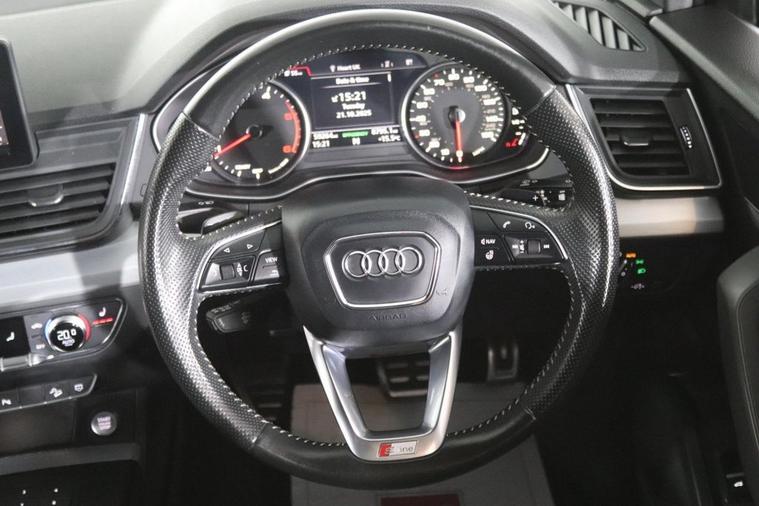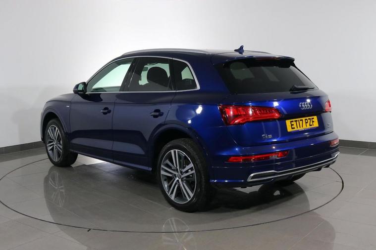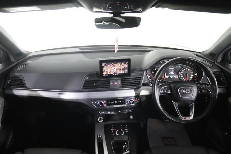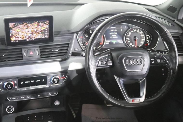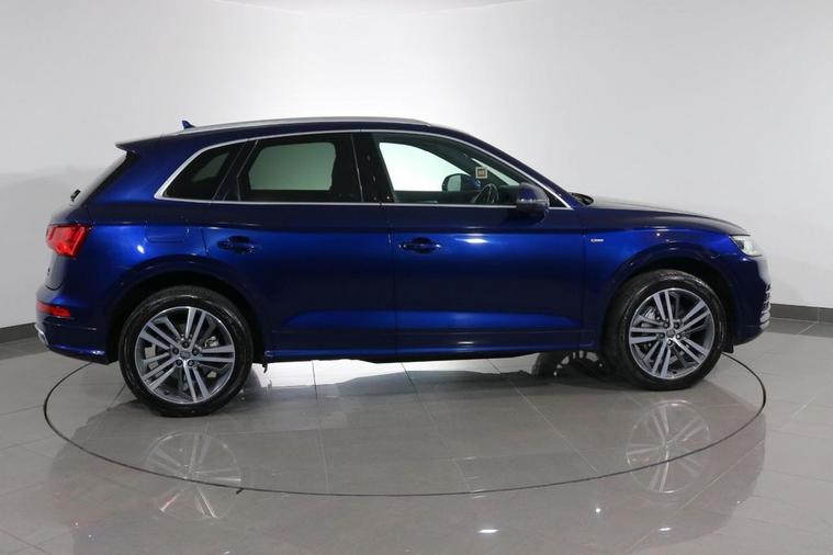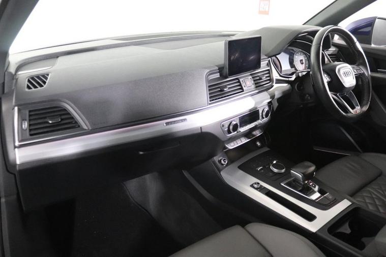 This desirable Audi Q5 S Line Quattro S Tronic finished in Navarra Blue looks fantastic complemented by 20 inch Alloy Wheels, Rear Privacy Glass, LED Headlights and S Line Body Styling. Find your way with integrated SATELLITE NAVIGATION with 7 inch LCD Display. Keep connected to your Phones APPS through APPLE CARPLAY and ANDROID AUTO. Park in ease with REVERSE CAMERA and FRONT & REAR PARKING SENSORS. Sit in luxury with HEATED STEERING WHEEL and FULL ROTOR GREY LEATHER Upholstery with POWER / HEATED Front Seats. Listen to your music through DAB Digital Radio with BANG & OLUFSEN SOUND SYSTEM. Keep connected with BLUETOOTH Phone System with USB ports. Comfortable to drive with Tri-Zone CLIMATE CONTROLLED AIR CONDITIONING and CRUISE CONTROL with Speed Limiting Function. Well equipped with Power-Operated Tailgate, Auto Headlights, Rain Activated Wipers and Power-Fold Door Mirrors. Also fitted with ISOFIX seats, Multifunctional Steering Wheel, Audi Drive Select, Alarm and Remote Door Locking with 2 x keys. Buy in confidence with SERVICE HISTORY with 4 x Documented Services.
