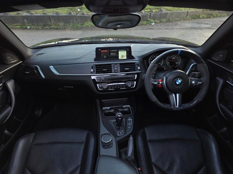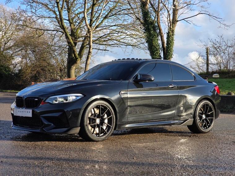 Presented by Hampton Car Sales, a trusted independent specialist with over 220 verified five-star Google reviews, this exceptional BMW M2 Competition is finished in striking Sapphire Black Metallic and has covered just 43, 000 miles, supported by a full BMW service history including the all-important running-in service completed on time. Powered by the 410ps 3.0 BiTurbo engine paired with the lightning-fast DCT gearbox, this example is enhanced by an outstanding factory specification that elevates both performance and everyday usability, including the highly sought-after 763M alloys for reduced unsprung weight and sharper handling, BMW Icon Adaptive LED headlights for superior night-time visibility, Comfort Access for keyless convenience, and an electric glass sunroof that floods the cabin with light. Inside, the M2 Comfort and Plus Packs add electric front seats with driver memory, heated seats, sun protection glazing and upgraded interior finishes, while Enhanced Bluetooth with wireless charging ensures seamless connectivity on the move. The Harman Kardon sound system delivers premium audio quality, the reversing camera and folding anti-dazzle mirrors make parking effortless, and the High-Beam Assistant automatically optimises visibility on dark roads. Performance credentials are further strengthened by the M Drivers Package and the upgraded M2 Competition braking system, providing confidence and control when driving enthusiastically. Tasteful M Performance upgrades enhance both aesthetics and driving feel, including extensive carbon fibre exterior components, M Performance interior carbon trim, CS-spec 763M wheels wrapped in Michelin Pilot Sport 4S tyres, and a Miltek valved exhaust for an exhilarating soundtrack when desired. Security is comprehensive with a Ghost immobiliser and tracker fitted, making this a meticulously specified, well-maintained and highly desirable M2 Competition that perfectly balances daily comfort with true M-car excitement.